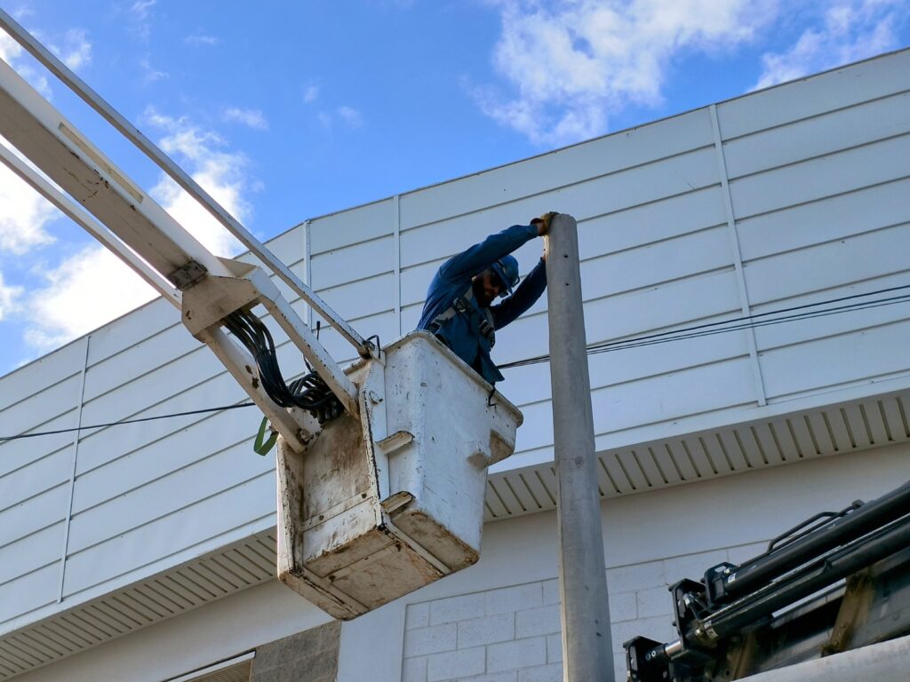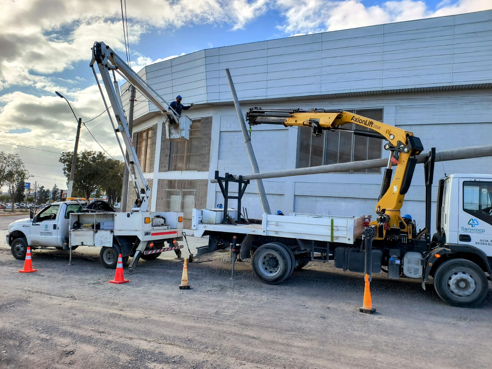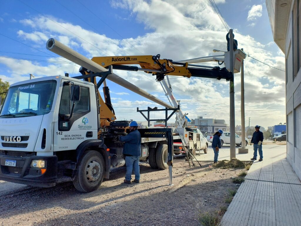 Nuestro personal de Energía comenzó con las tareas preliminares, para la instalación de nuevas redes preensambladas, sobre Sarmiento entre Av. 20 de Junio y La Plata. En una primera instancia, se instalarán dos nuevas columnas de hormigón y el montaje de herrajes y perfilería. Una vez finalizado el primer tramo de la obra, se procede al tendido de nuevas redes de distribución de energía, el traspaso de conexiones domiciliarias a la nueva red, mantenimiento del servicio de alumbrado y por último se ejecuta el retiro de la infraestructura antigua.