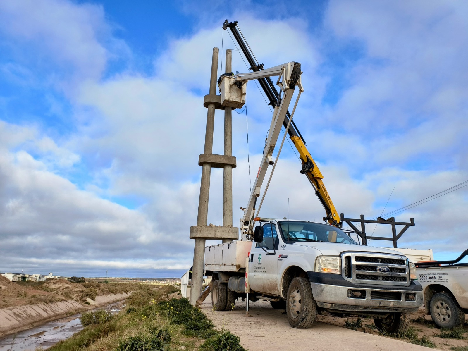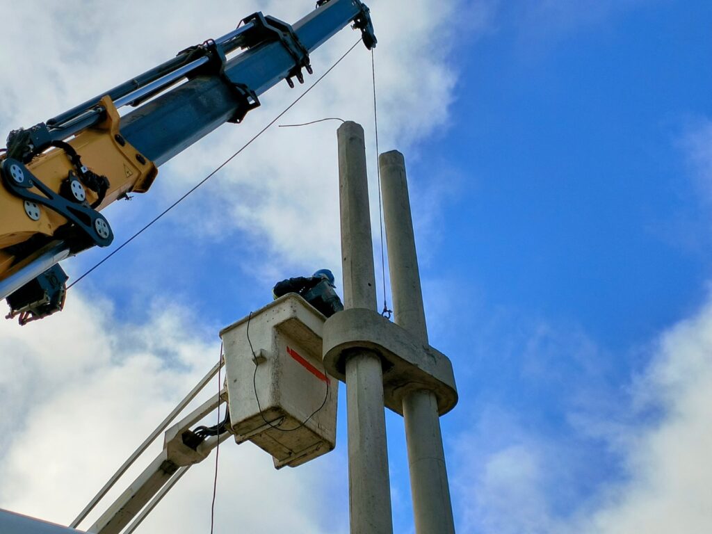 Luego de la instalación de nuevas redes subterráneas de media tensión en la zona sur, nuestro personal de Energía, comenzó con las tareas para desmontar y reubicar columnas, las cuales estaban ubicadas en inmediaciones de Victoria de Eizaguirre y Sara Carabajal.