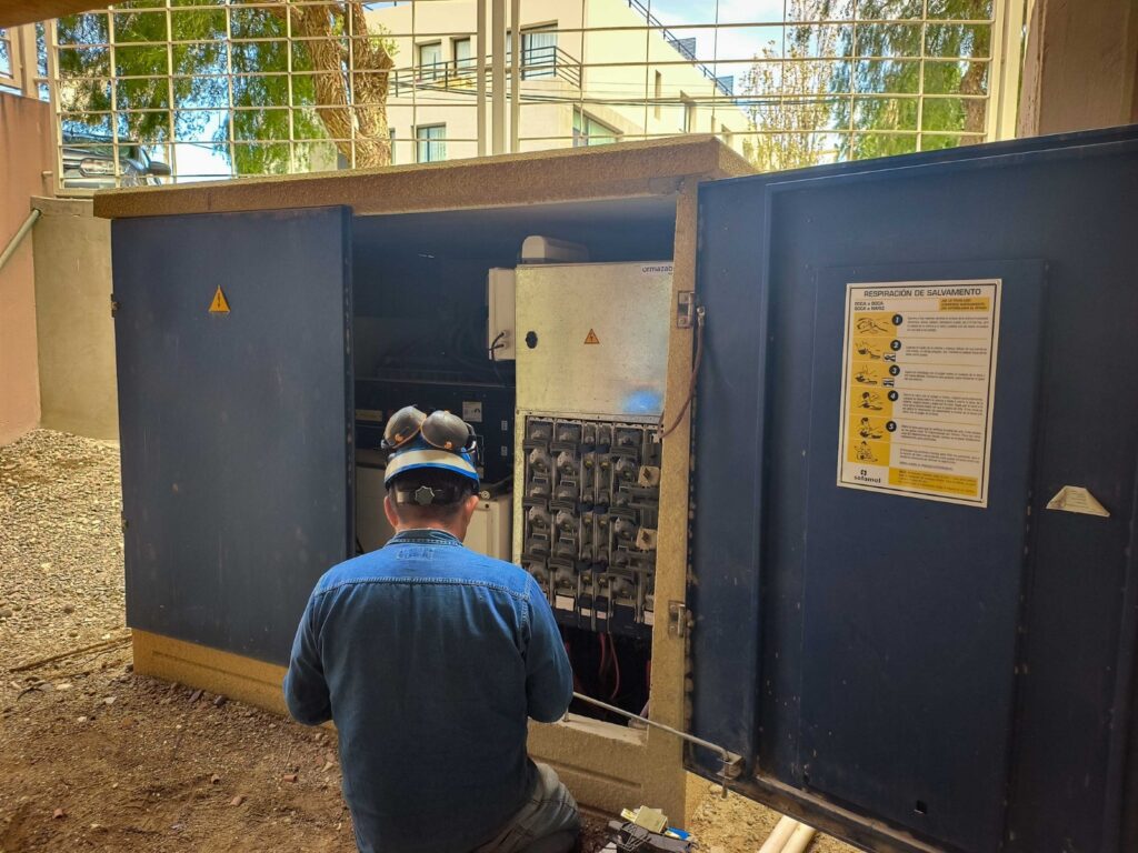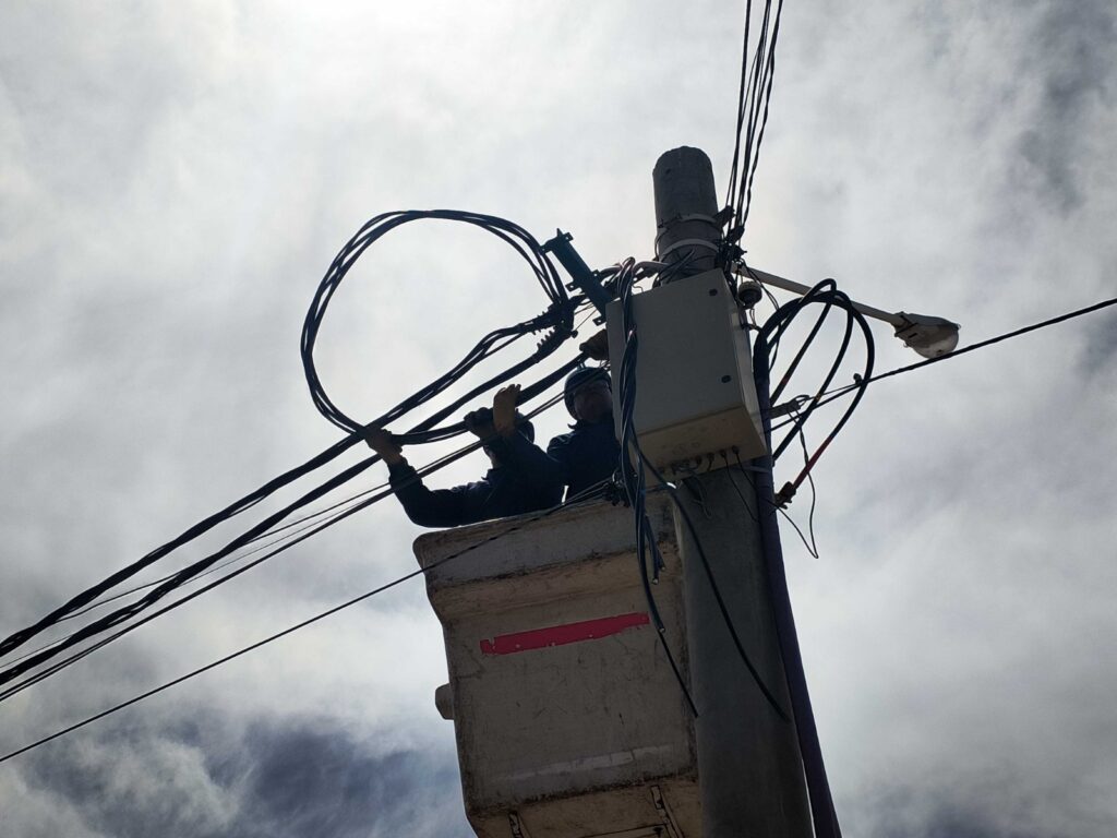 Nuestro personal de Energía, luego de ejecutadas las nuevas obras subterráneas de energía, realizó tareas de reconfiguración de redes aéreas de baja tensión, con el fin de equilibrar cargas entre las diferentes subestaciones de la zona de influencia, en la intersección de Mathews y Victoria de Eizaguirre.