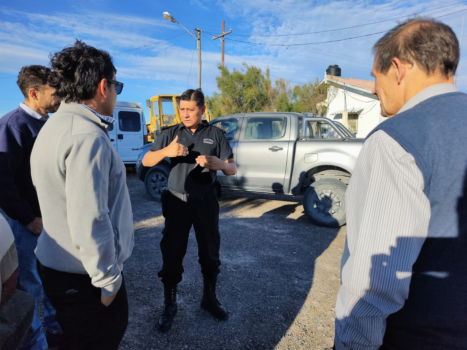 Durante la recorrida, el Comisario expuso el proyecto de reubicación de los vehículos, para lo cual se deberá realizar la modificación del actual tendido y la instalación de nuevos postes y luminarias. Harry Woodley, Presidente de Servicoop, luego de la recorrida destacó: “Hemos mantenido varias reuniones con el Comisario Pablo Carrizo y uno de los temas que abordamos fue optimizar el alumbrado que tiene el puesto de control. Desde la comisaría han realizado el desmalezamiento del predio y también han trabajado con motoniveladora para poder reubicar los vehículos, que hoy están cerca del acceso al aeropuerto”.
