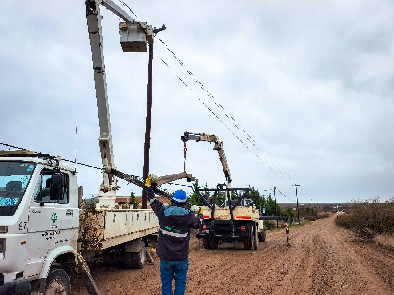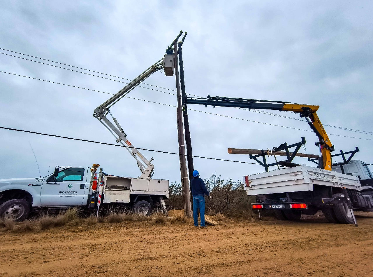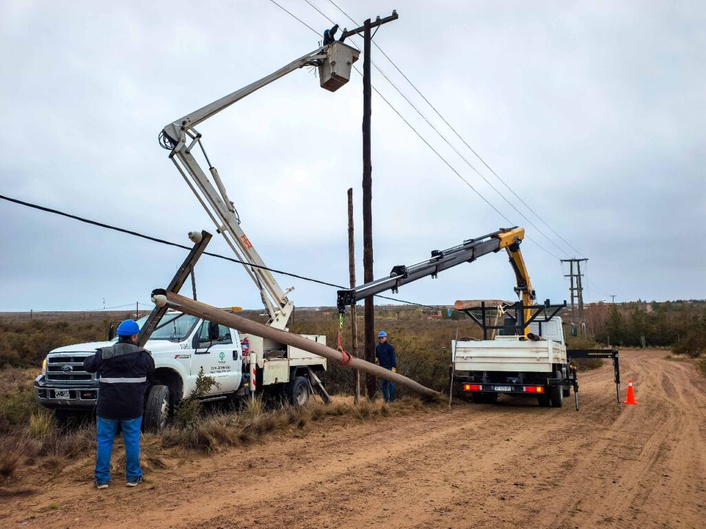 En la jornada de hoy, nuestro personal de Energía, llevó adelante el recambio de tres postes, pertenecientes al tendido eléctrico de media tensión, sobre la calle Los Zorzales entre Los Flamencos y Cauquén, en inmediaciones del Parque Ecológico Área “El Doradillo”.