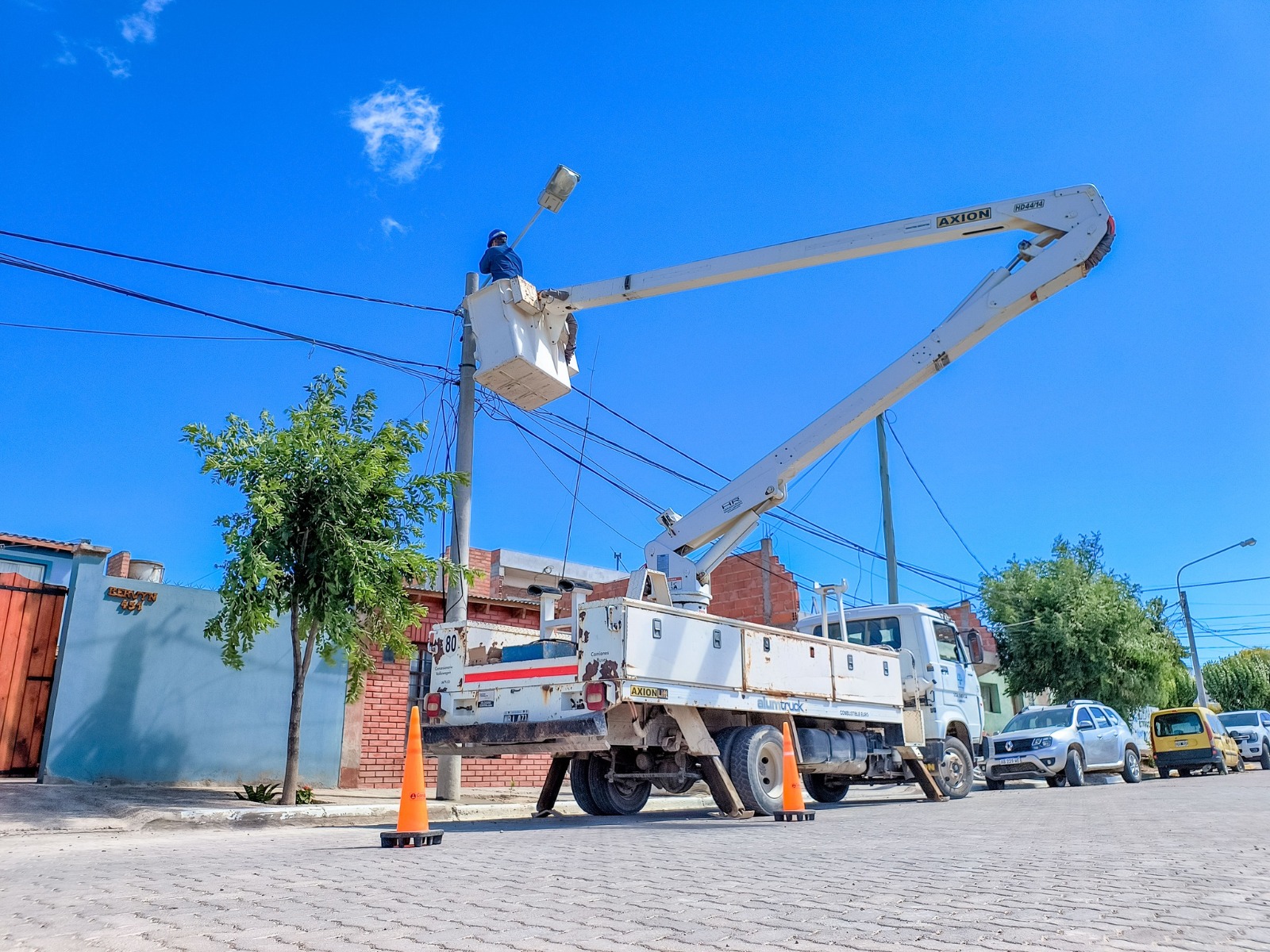 Durante la mañana de hoy, nuestro personal de Agua y Saneamiento, realizó la renovación de una conexión domiciliaria de agua potable, en la calle Marcos A. Zar entre H. Yrigoyen y Roque Sáenz Peña. Por otro lado, un equipo de Energía llevó adelante el reemplazo de dos postes pertenecientes al tendido eléctrico de baja tensión, por dos nuevas columnas de hormigón, sobre la calle Berwyn entre Necochea y Menéndez. Luego, personal de alumbrado ejecutó la readecuación de las luminarias sobre las nuevas columnas.