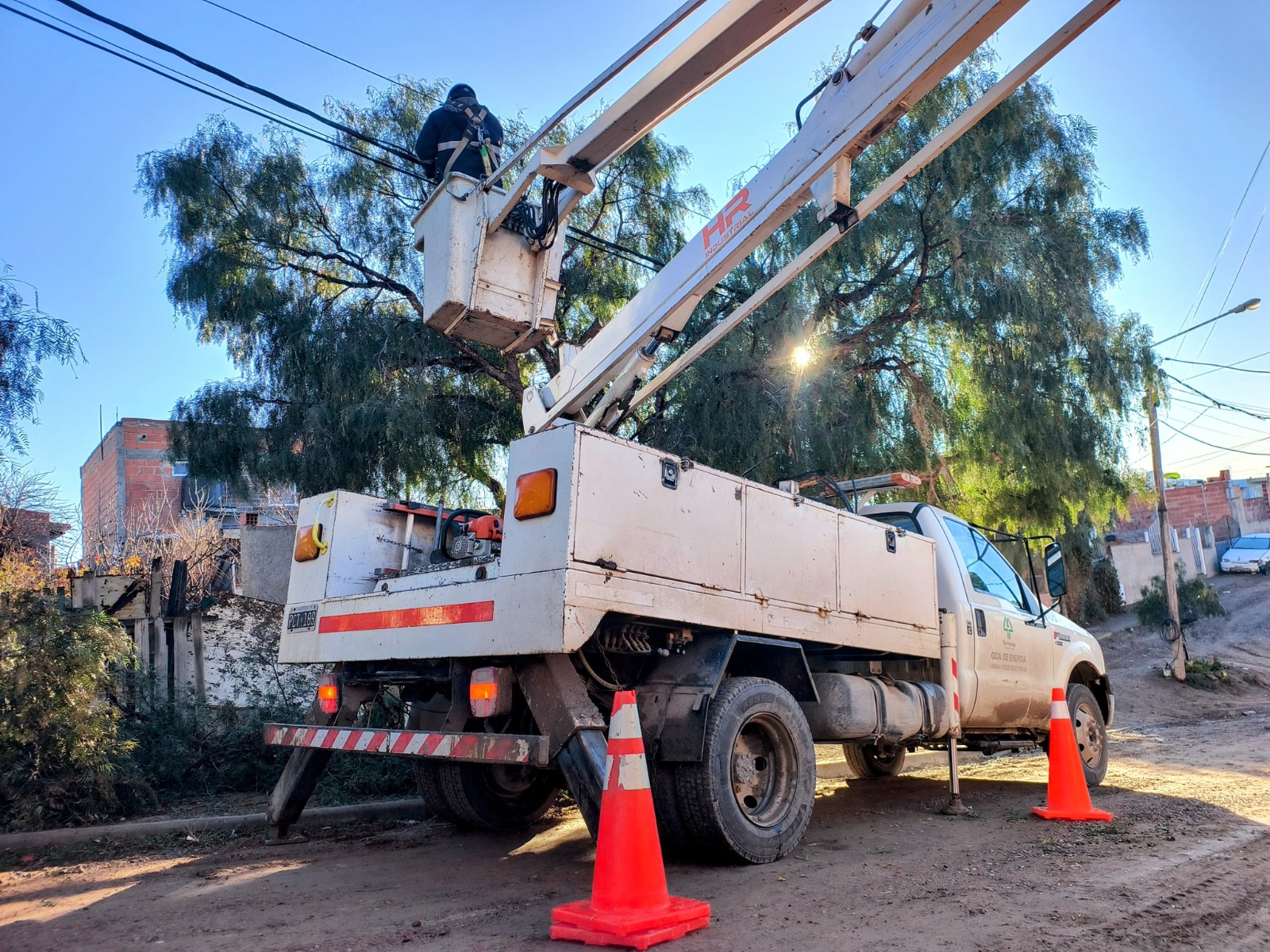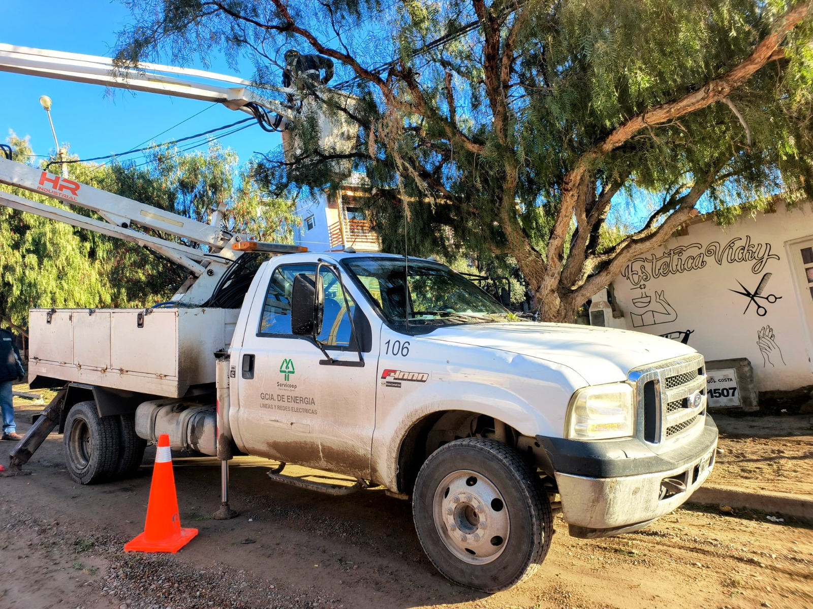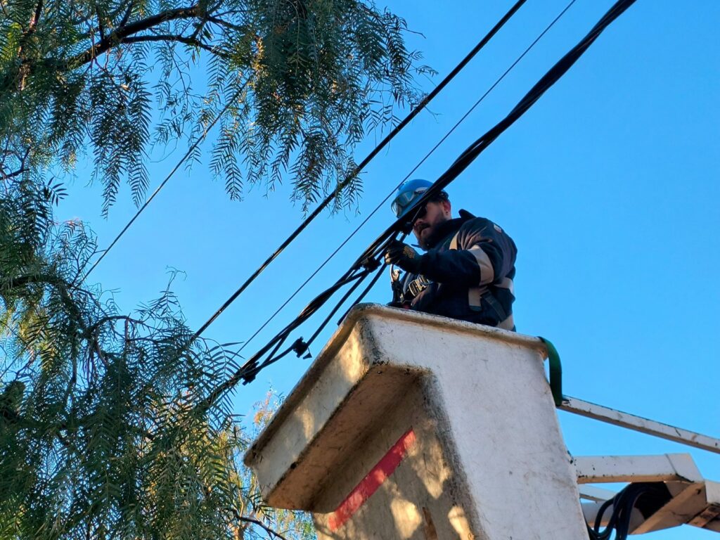 Nuestro personal de energía, realizó la reparación de un tramo del tendido eléctrico de baja tensión, que se vió afectado por la fricción de ramas y vegetación, en inmediaciones de la calle Gobernador Costa al 1500, en la zona norte de nuestra ciudad.