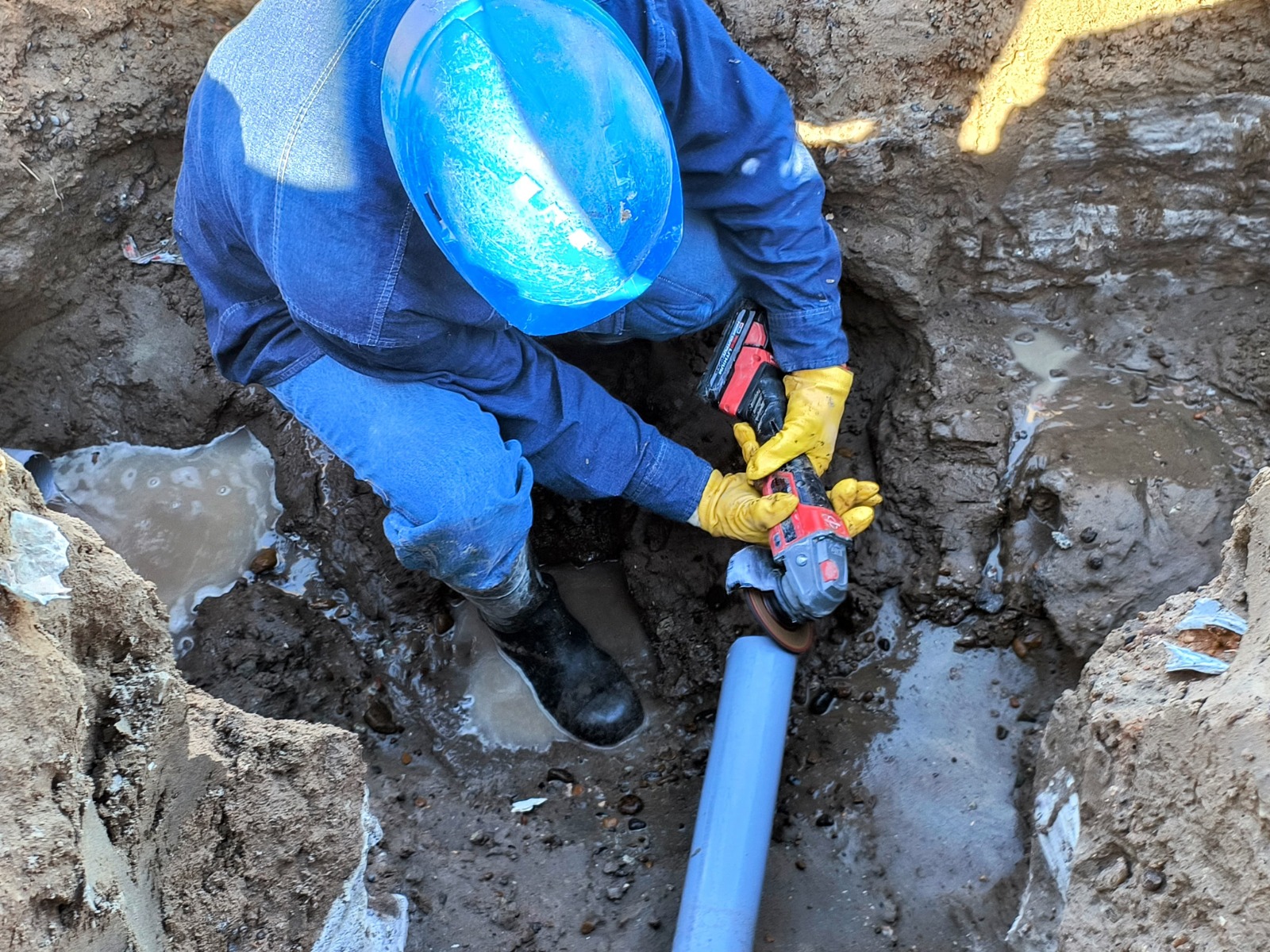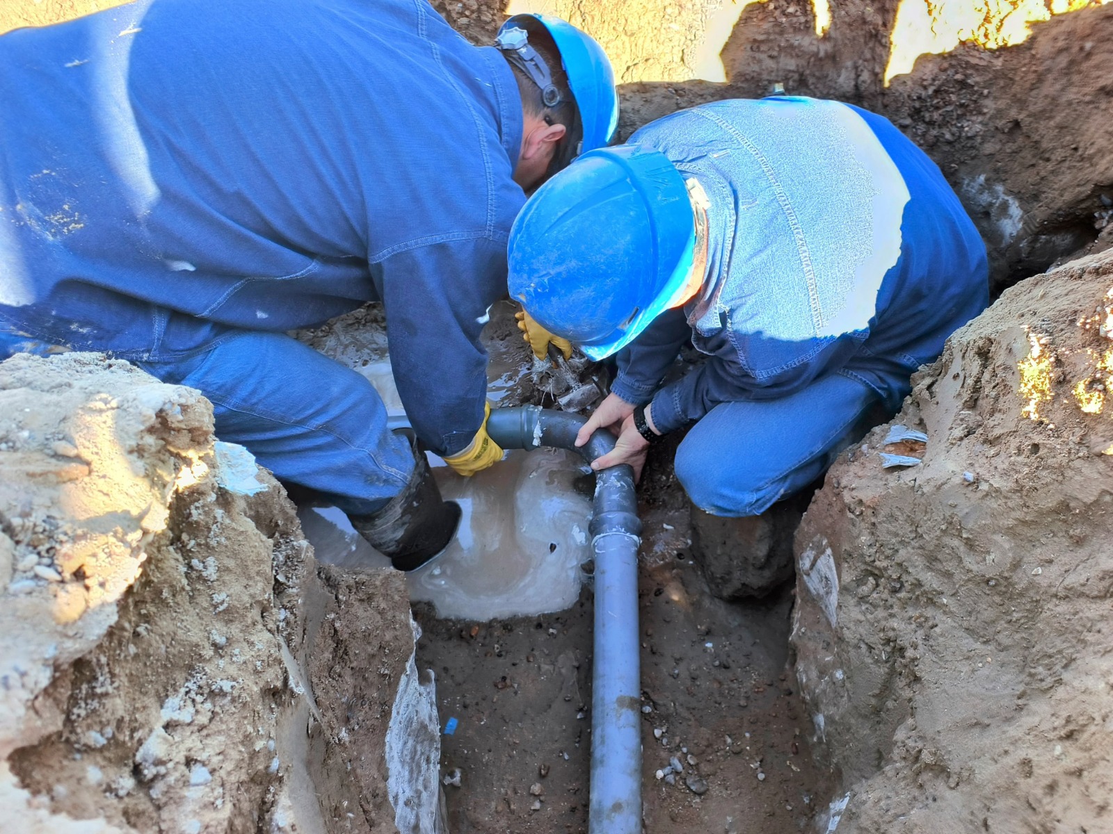 Nuestro personal de agua y saneamiento detectó una pérdida de agua en la vía pública, en inmediaciones de las calles Av. Gales y Santiago del Estero. Al realizar la apertura de terreno, corroboraron la avería sobre una red de distribución. Una vez preparado el terrero y vaciado las instalaciones, se procedió a la reparación de la mencionada red y a la normalización del servicio.