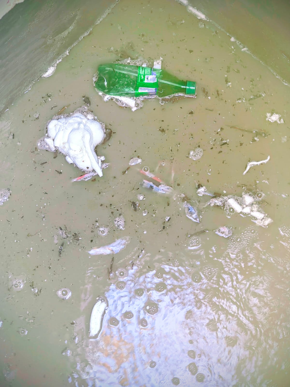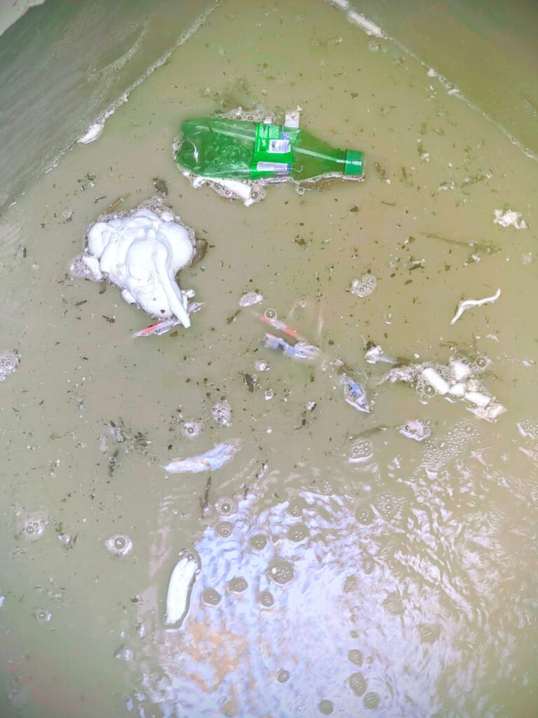 Durante la mañana de hoy el equipo de saneamiento al acudir a un reclamo por reblase, encontró dentro de los colectores restos de espuma industrial y una botella de gaseosa. Estos objetos provocaron un atascamiento dentro del colector ubicado sobre la calle Paulina Escardó, generando el mal funcionamiento de la red. Como lo hemos expresado en reiteradas ocasiones, los colectores están diseñados para transportar solamente efluentes cloacales y bajo ningún punto de vista pueden funcionar con el ingreso de este tipo de objetos.