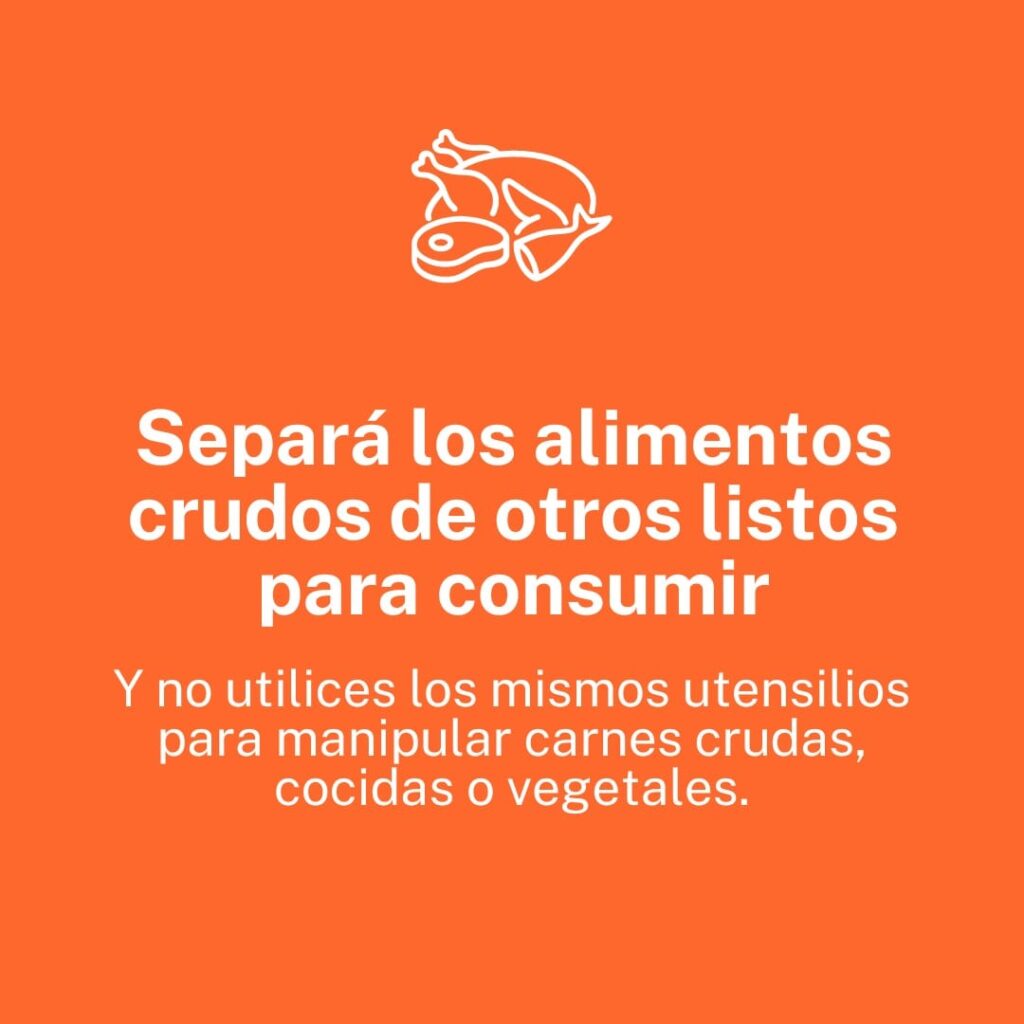Las claves de la inocuidad son lavarse las manos siempre con agua y jabón: antes de comer y cocinar, después de tocar alimentos crudos, ir al baño o cambiar pañales; lavar las frutas y las verduras cuidadosamente bajo un chorro de agua segura; cocinar completamente los alimentos, en especial las comidas que lleven carne picada; y separar siempre las carnes crudas de los alimentos cocidos o listos para consumir, no utilizando los mismos utensilios para manipular carnes crudas y alimentos listos para el consumo.