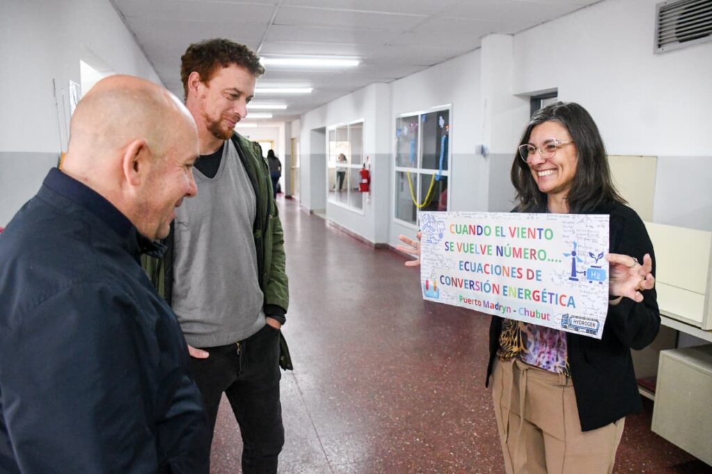 El intendente de Puerto Madryn, Gustavo Sastre, visitó esta mañana la Escuela Nº 7733, en donde ratificó su acompañamiento para que alumnas de tercer año puedan participar del Programa Nacional de Ferias de Ciencia y Tecnología 2025, con el proyecto denominado “Cuando el viento se vuelve números: ecuaciones de conversión energética”.