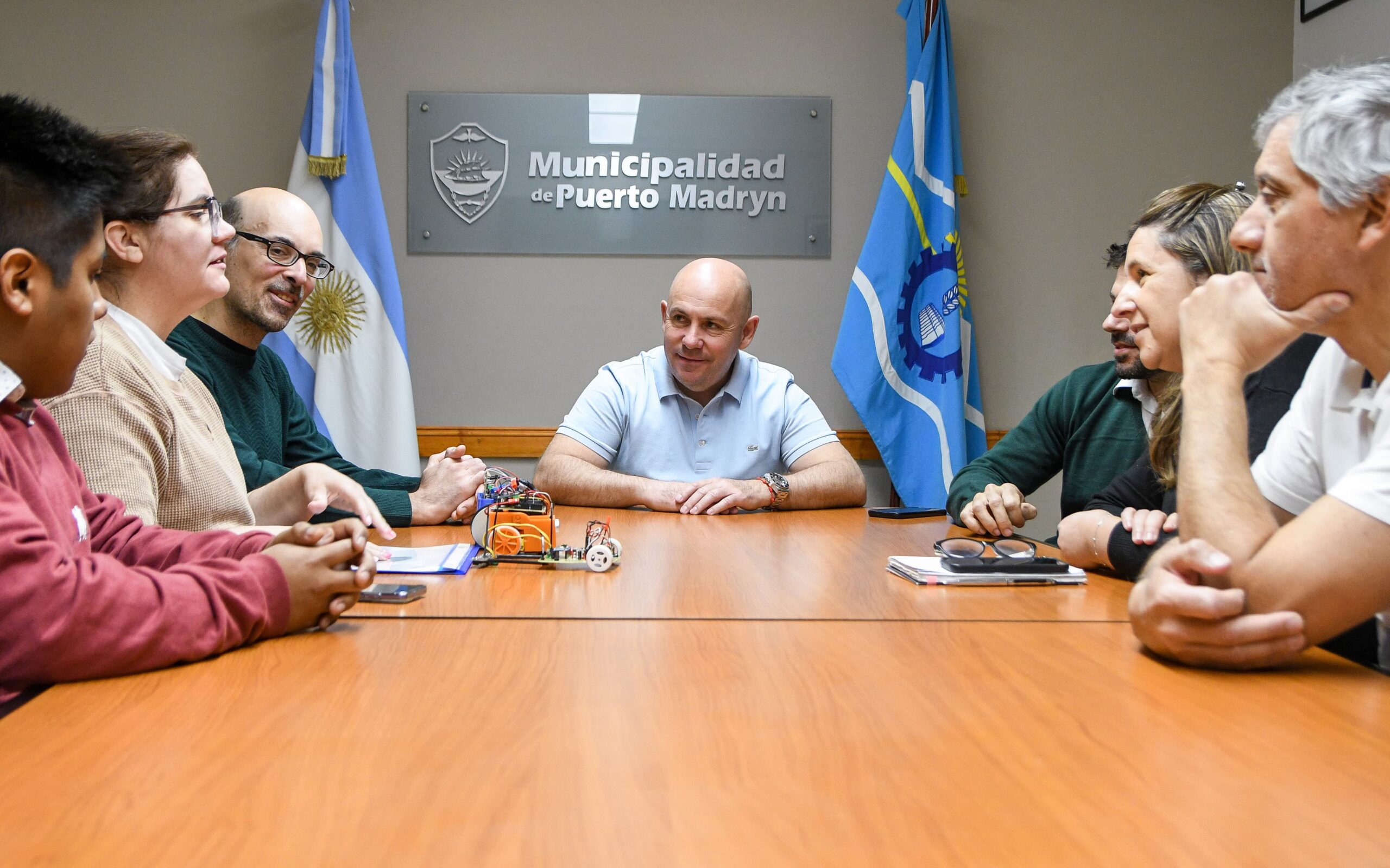 El Intendente de Puerto Madryn recibió en el Municipio a quien está a cargo de la iniciativa y a docentes de la Escuela Politécnica Nº 703 “José Toschke”, quienes le brindaron detalle de una propuesta vinculada a la robótica