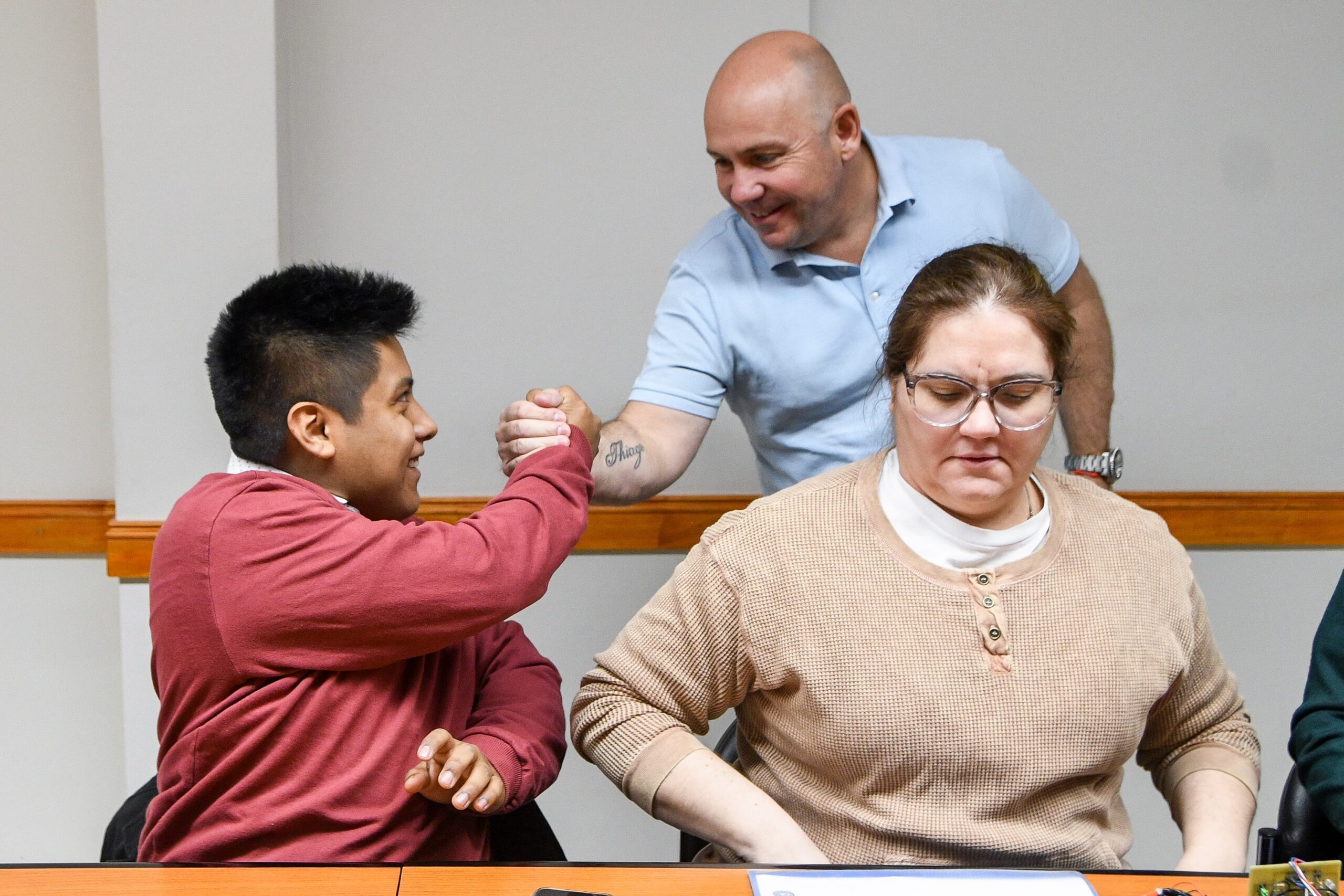 En el encuentro entre Sastre, el estudiante a cargo de la propuesta y los docentes, también estuvieron presentes el viceintendente Martín Ebene; el secretario de Producción, Innovación y Empleo, Enrique Calvo, y la concejala Roxana Barrera.