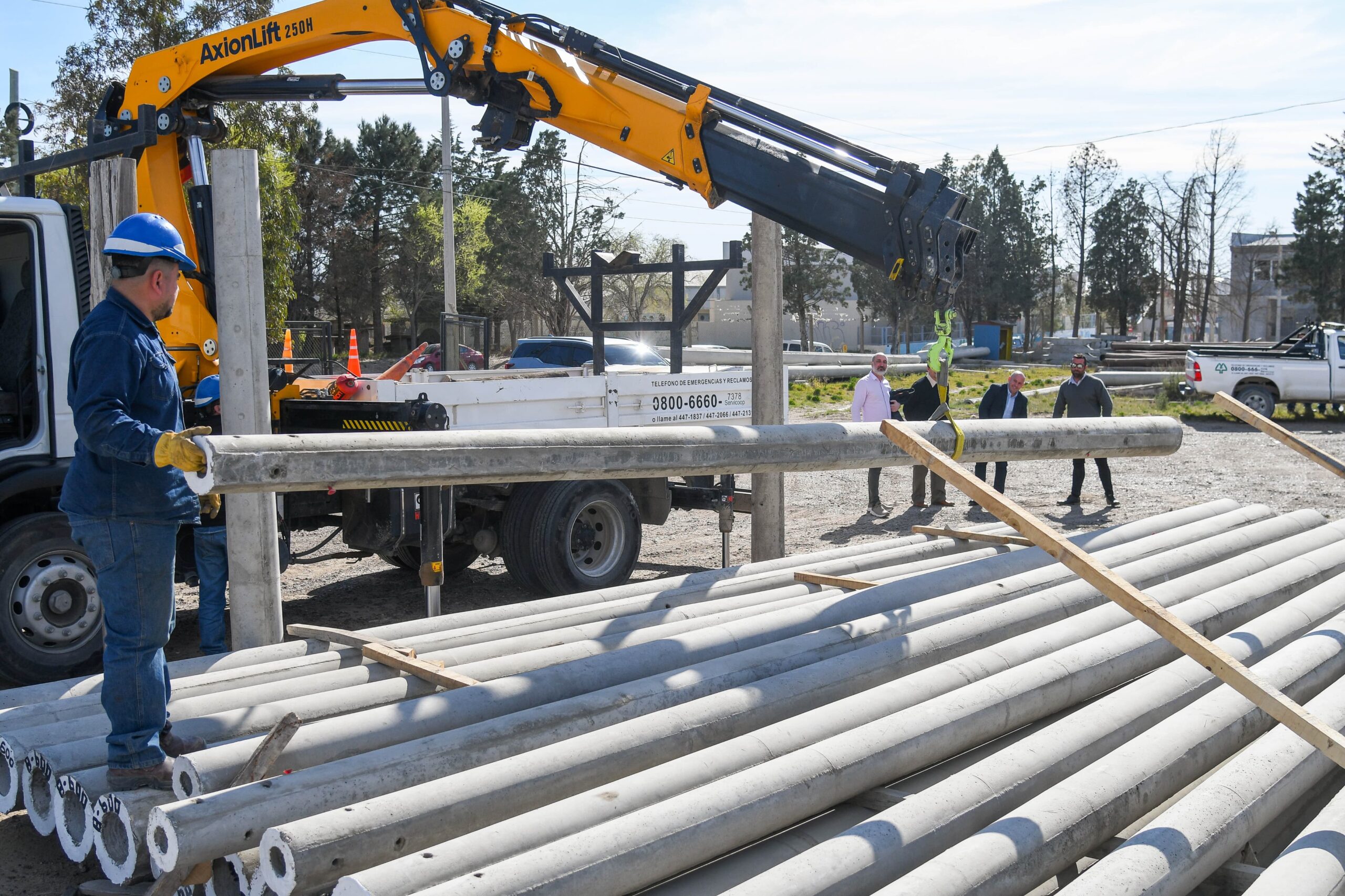 El Intendente de Puerto Madryn estuvo en el predio en el que están dispuestos los elementos con los que se está reemplazando a los postes de madera. Las labores se ejecutan planificando la ciudad a futuro y analizando los sectores prioritarios