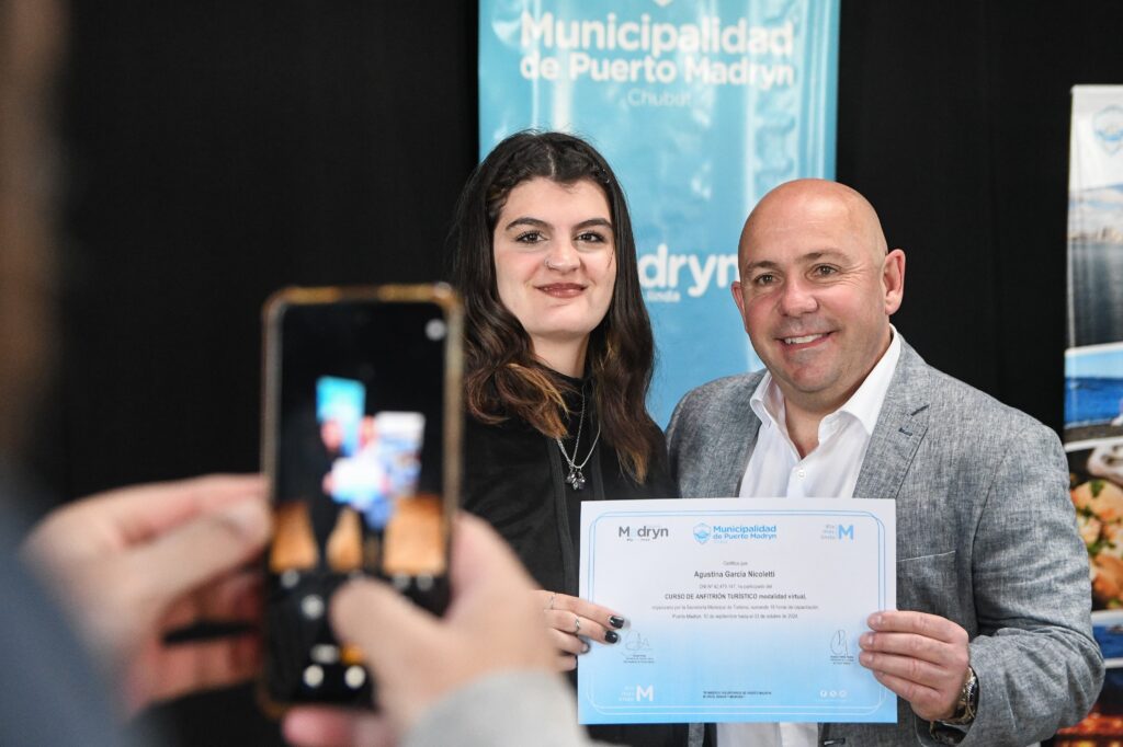 El intendente de Puerto Madryn, Gustavo Sastre, encabezó hoy la entrega de certificados para más de 60 personas que realizaron el curso de anfitriones turísticos. En dicho proceso formativo, se brindaron nociones fundamentales vinculadas a los atractivos turísticos de la ciudad, Península Valdés y el Valle. Además, en esta oportunidad se trabajó conjuntamente con el Instituto Municipal de Inglés, sumando conocimientos básicos en idioma extranjero.