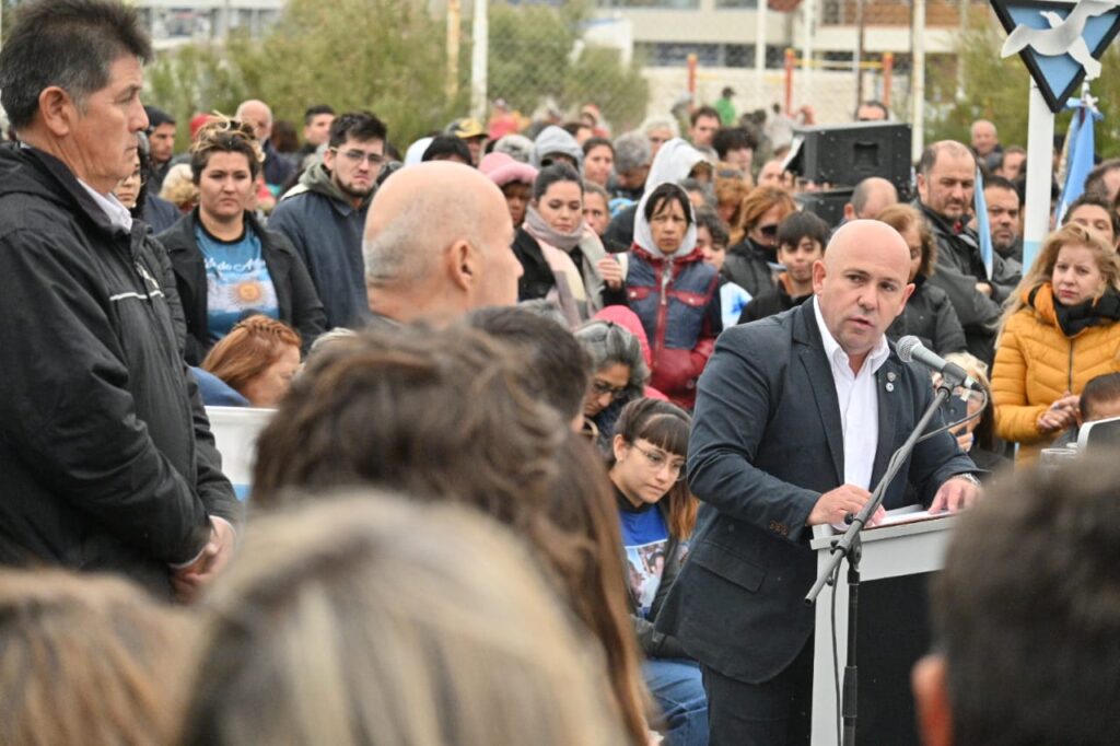 El Intendente de la ciudad fue el encargado de darle un cierre al acto con el discurso principal, ante un gran marco de vecinos que se hicieron presentes en el Monumento de Avenida Rawson.