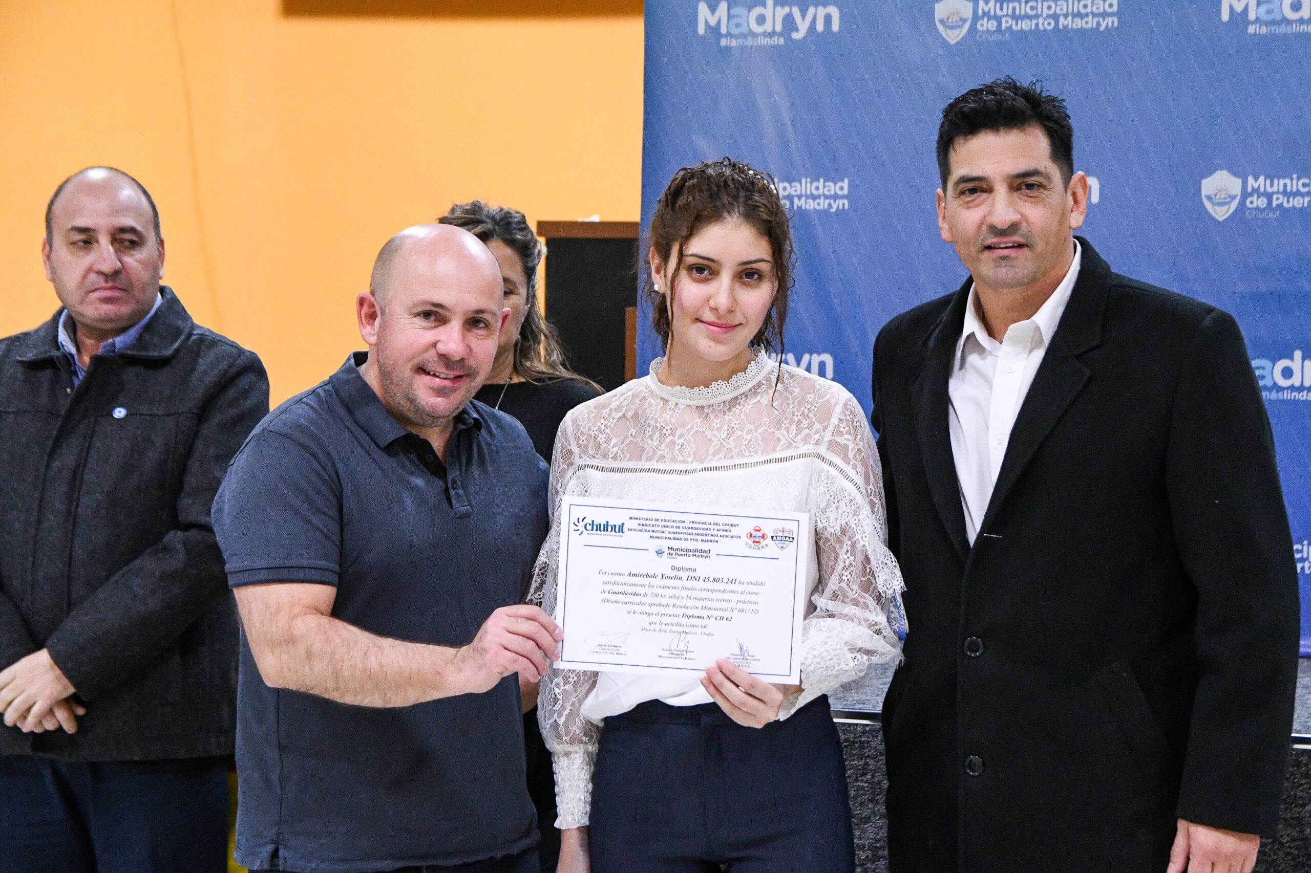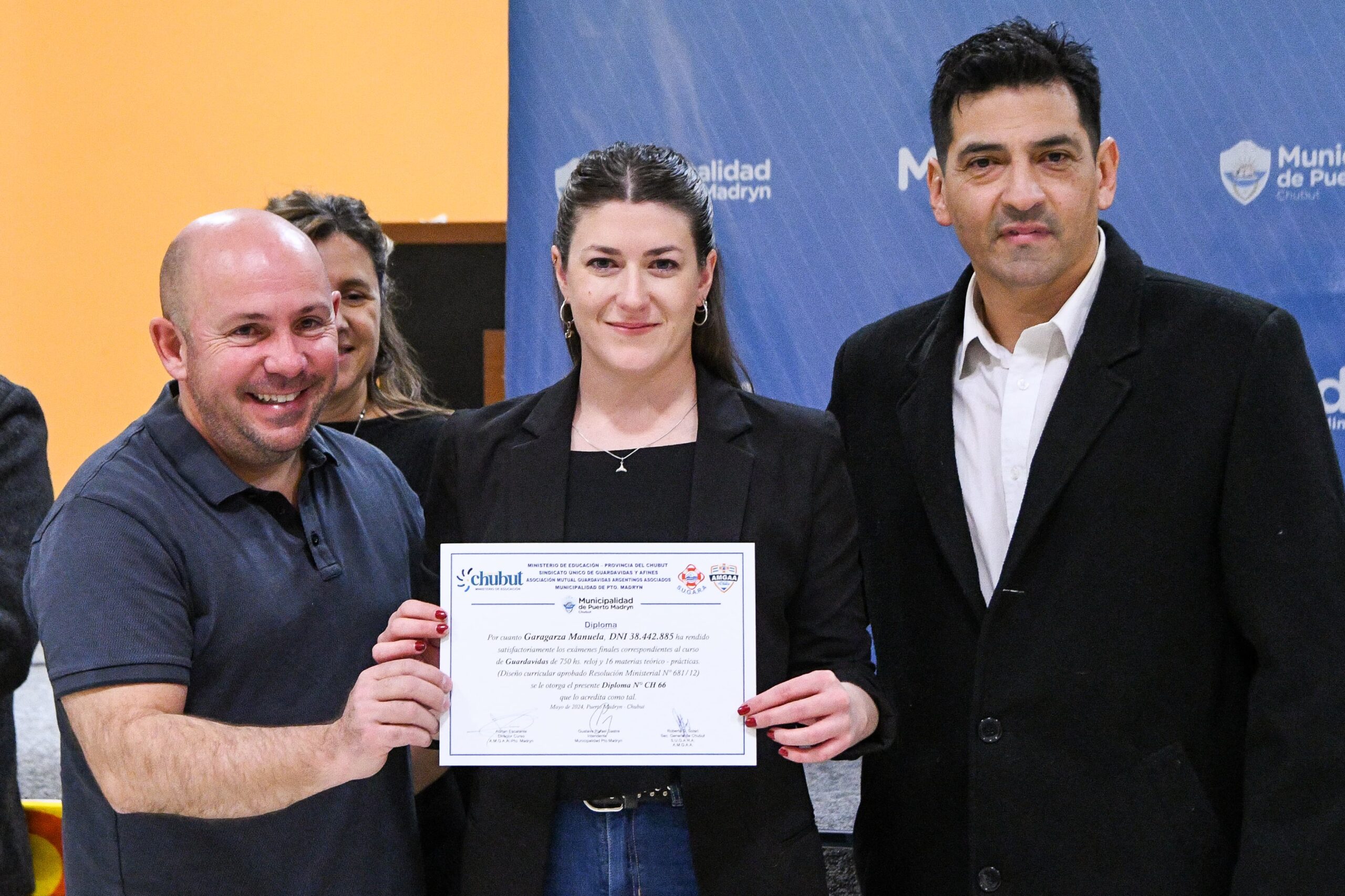 En la entrega de certificados, Sastre estuvo junto a la vicepresidenta 1ª del Concejo Deliberante a cargo de la Presidencia del cuerpo, Roxana Barrera; la secretaria de Gobierno, Leila Zanette; el representante de SUGARA y la mutual de guardavidas AMGAA, Adrián Escalante; el delegado de SUGARA de Rawson, Alejo Ramírez; el subsecretario de Prevención y Protección Ciudadana, Luis Báez; el diputado provincial Marcelo Rubia; el supervisor técnico de formación profesional del Ministerio de Educación, Marcelo Izquierdo, y demás autoridades.