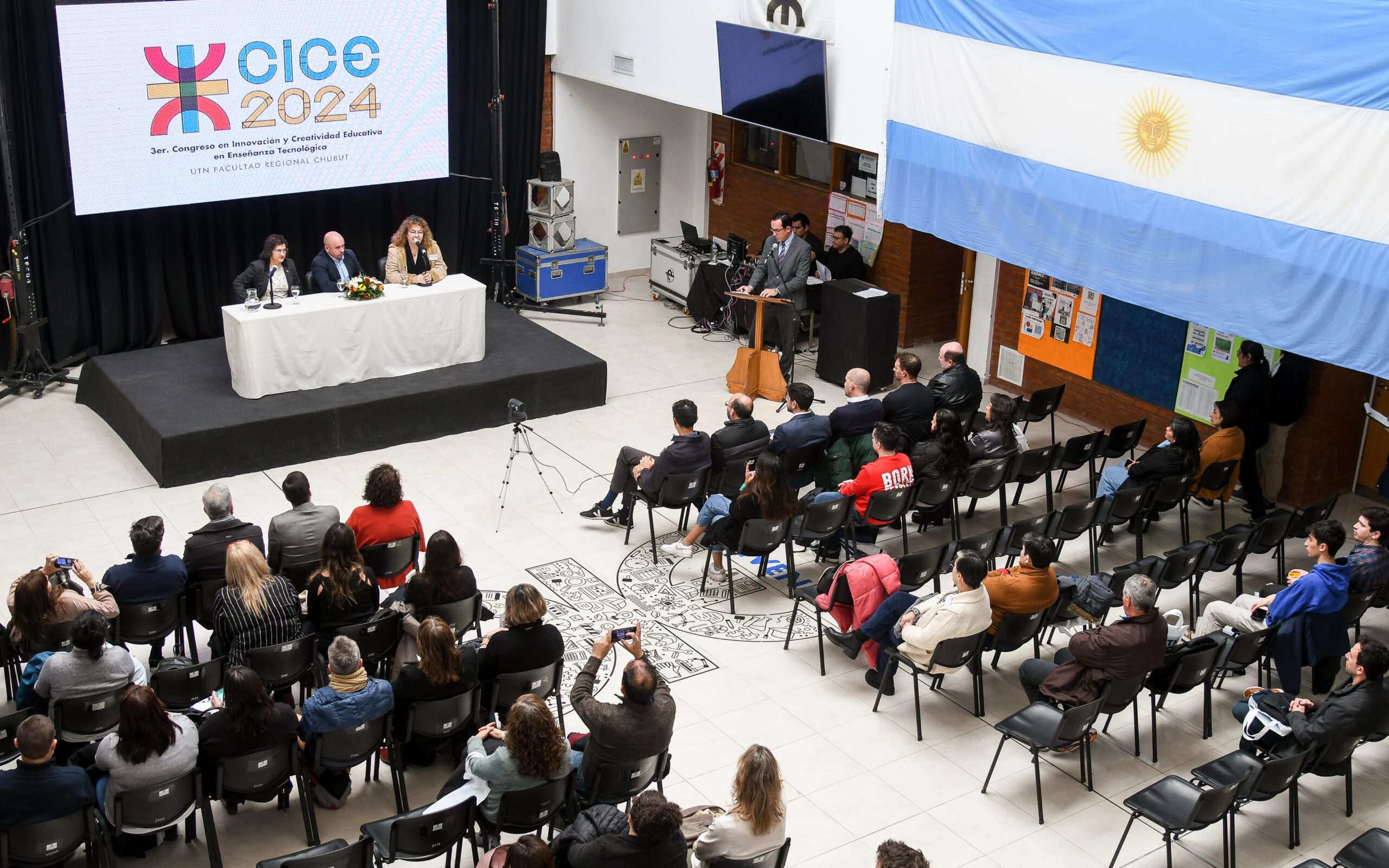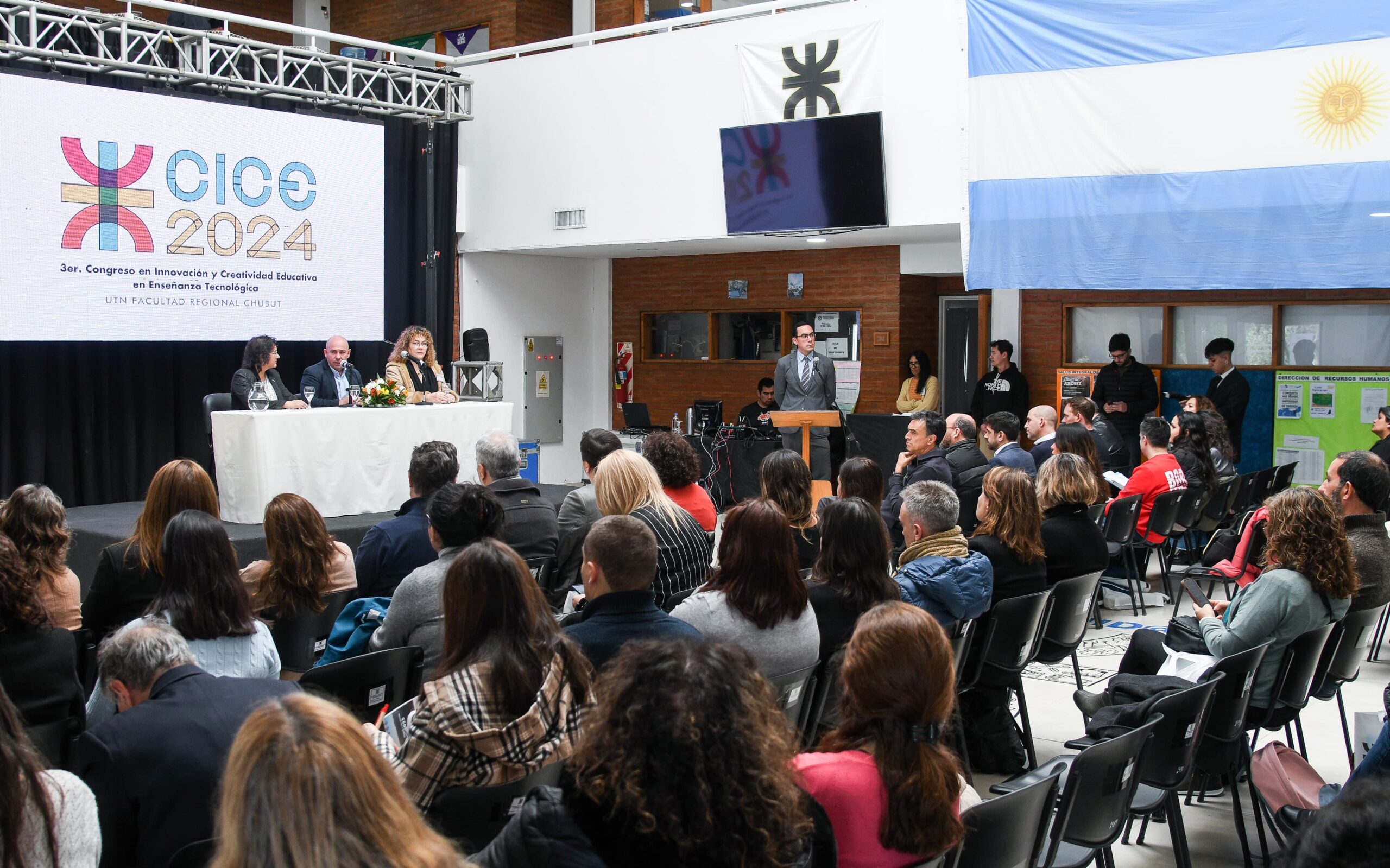 El intendente de Puerto Madryn, Gustavo Sastre, encabezó hoy el tercer Congreso de Innovación y Creatividad Educativa en la Enseñanza Tecnológica (CICE), organizado por la Facultad Regional Chubut de la Universidad Tecnológica Nacional. En este encuentro, que durará tres días, se reunirán docentes de todo el país para compartir y debatir sobre el aprendizaje entre los profesionales del rubro.