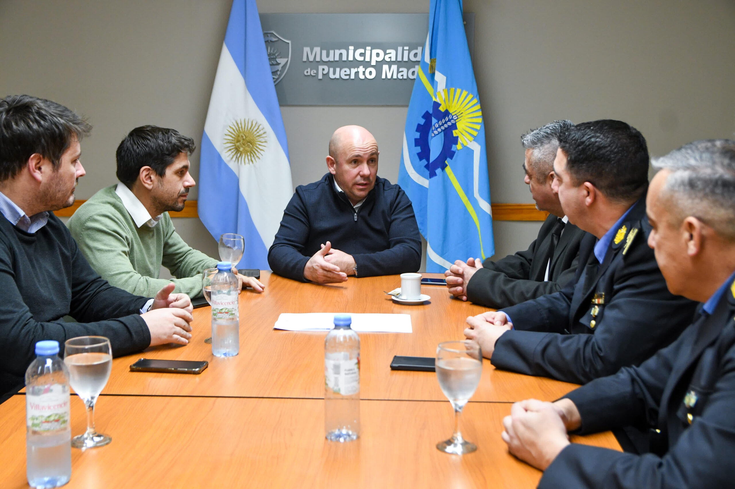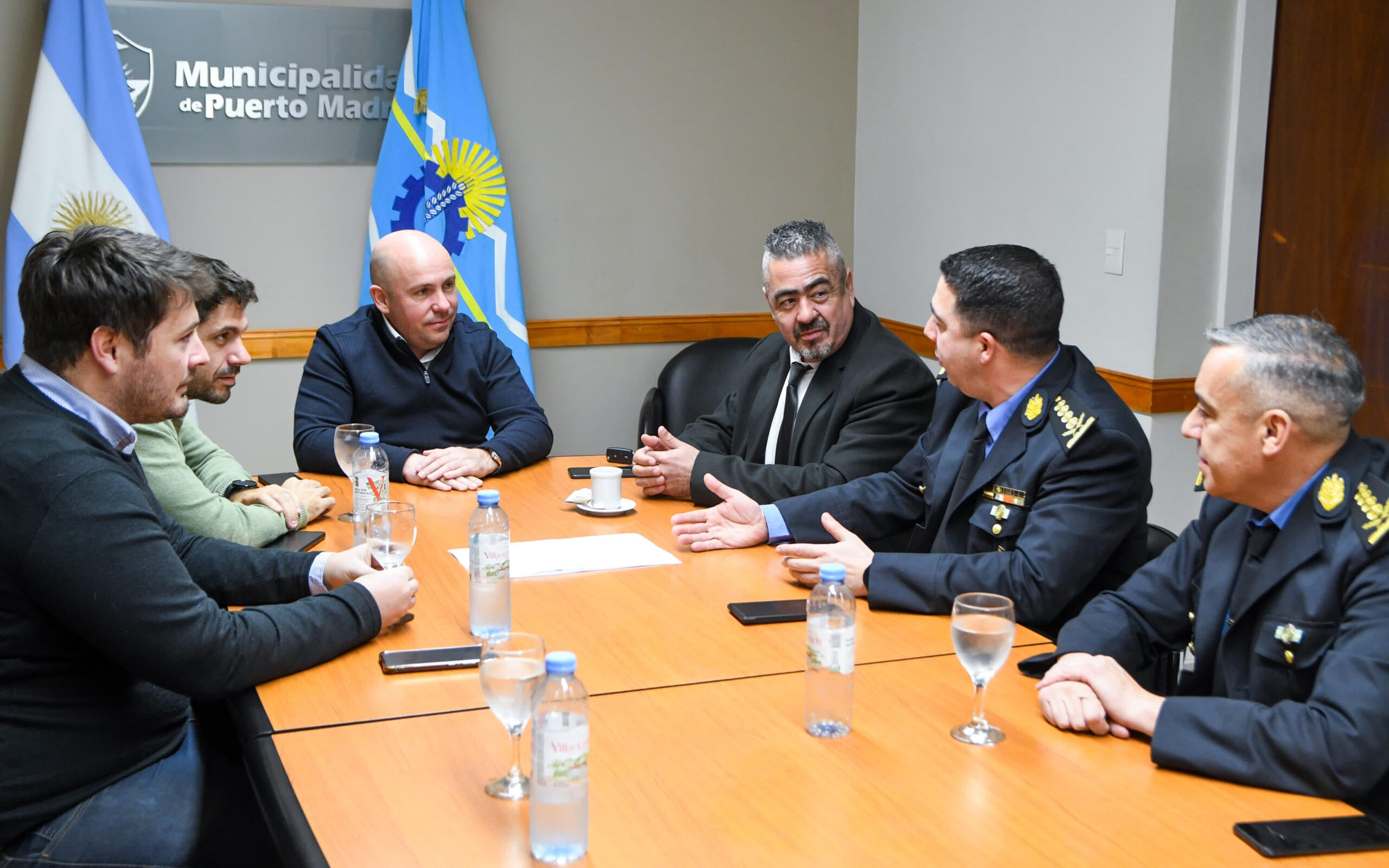 En las últimas horas el Intendente Gustavo Sastre, acompañado por el Viceintendente Martín Ebene, recibió en la Municipalidad al Ministro de Seguridad de la Provincia de Chubut, Héctor Iturrioz, a la cúpula policial encabezada por Andrés García, y demás colaboradores.