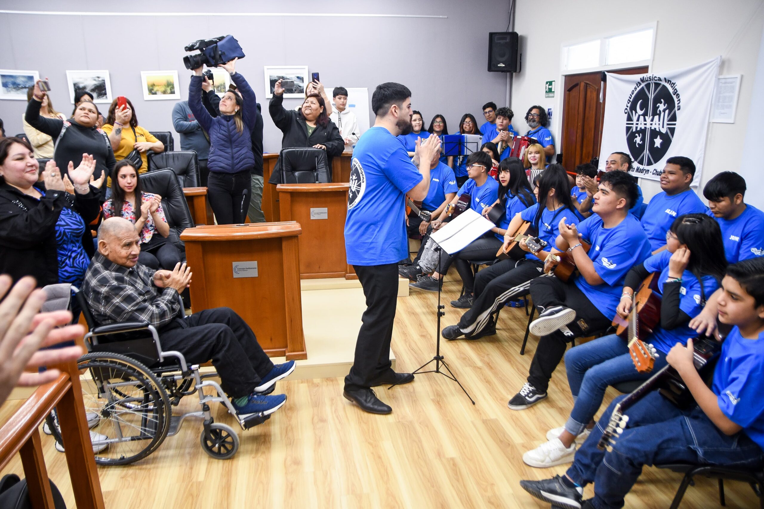 La composición musical «El Andar de Felcho», de los autores Mario Martínez y Omar Centeno, fue interpretada hoy en el Concejo Deliberante por la Orquesta Infantil de Música Indígena Argentina y Latinoamericana «Yayau», dependiente de la Secretaría de Gobierno de la Municipalidad de Puerto Madryn.