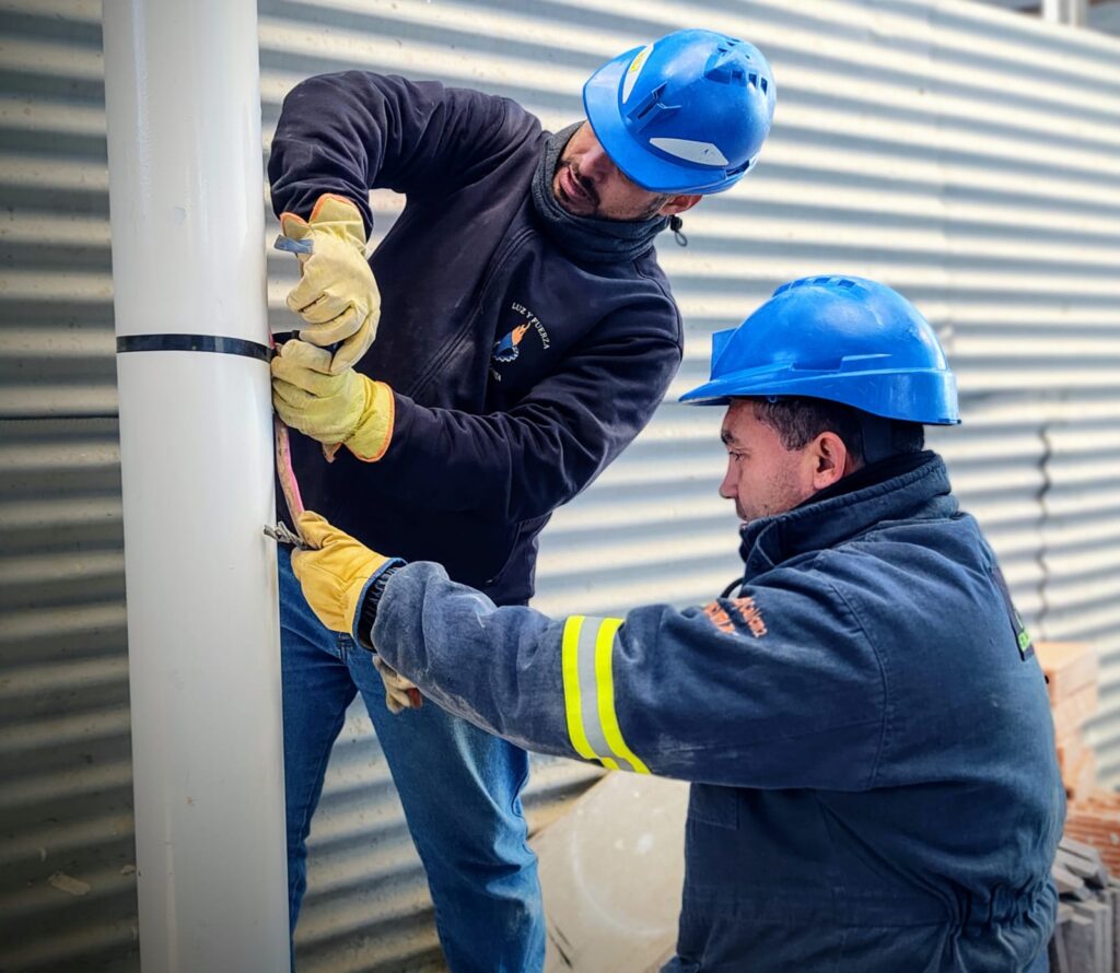 Nuestro personal de alumbrado continúa con las tareas sobre la intersección de las calles Av. Roca y 28 de julio. El pasado miércoles, quedaron instaladas las nuevas columnas y el día de ayer, se llevó adelante el tendido subterráneo de la red, la cual abastecerá de energía a las nuevas instalaciones.
