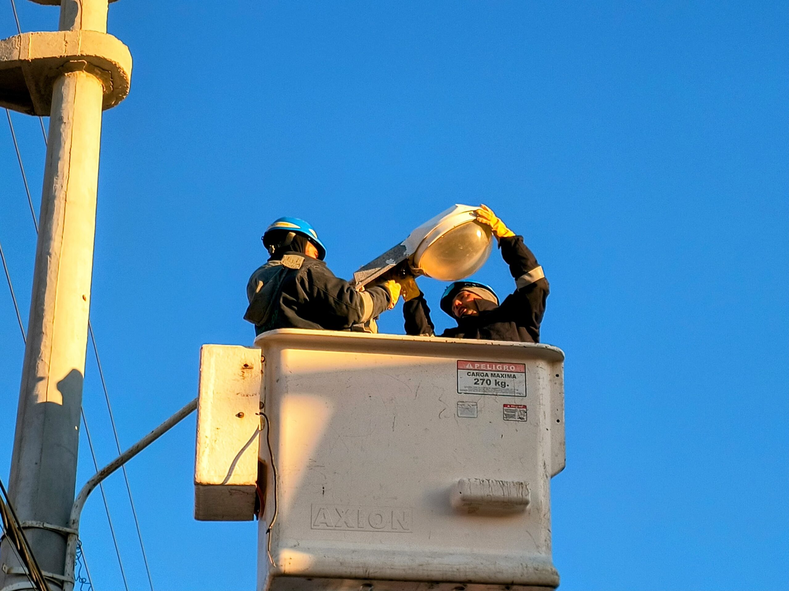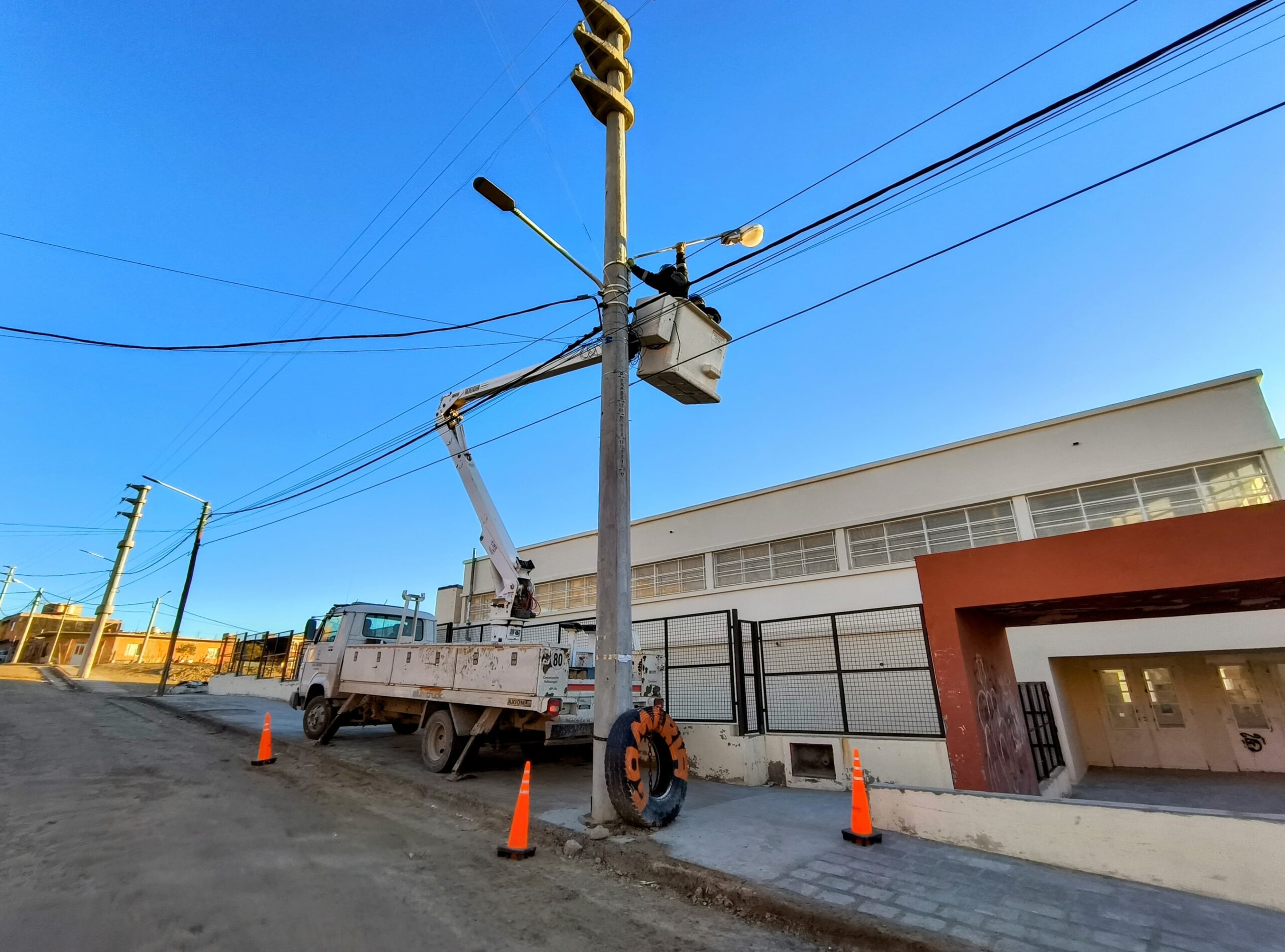 Durante la mañana de hoy nuestro personal de alumbrado instaló nuevas luminarias en inmediaciones de la escuela Nº 219, para brindar mayor luminosidad en la zona de influencia. La misma está localizada en las intersecciones de las calles Río Mayo y Tecka.