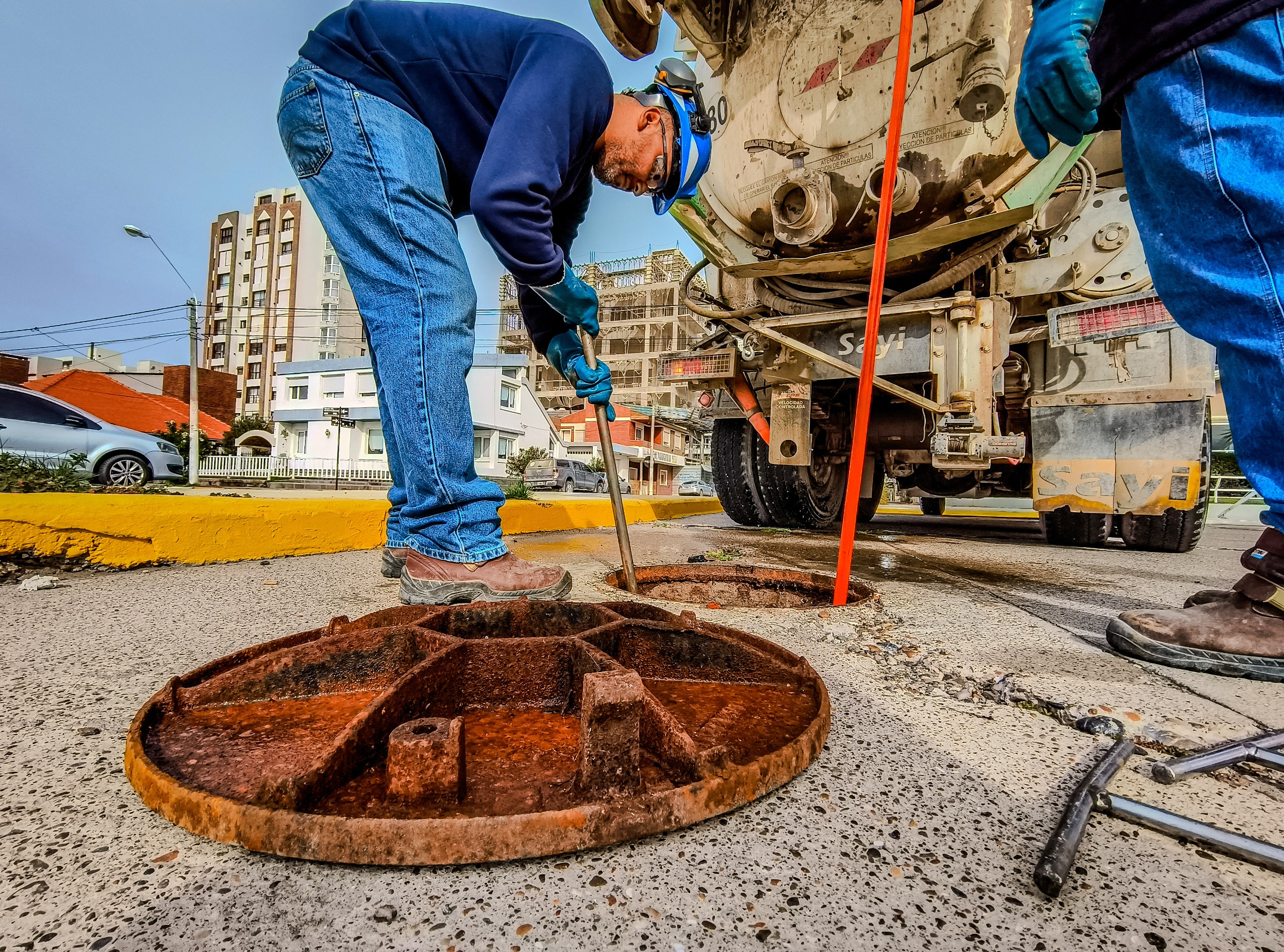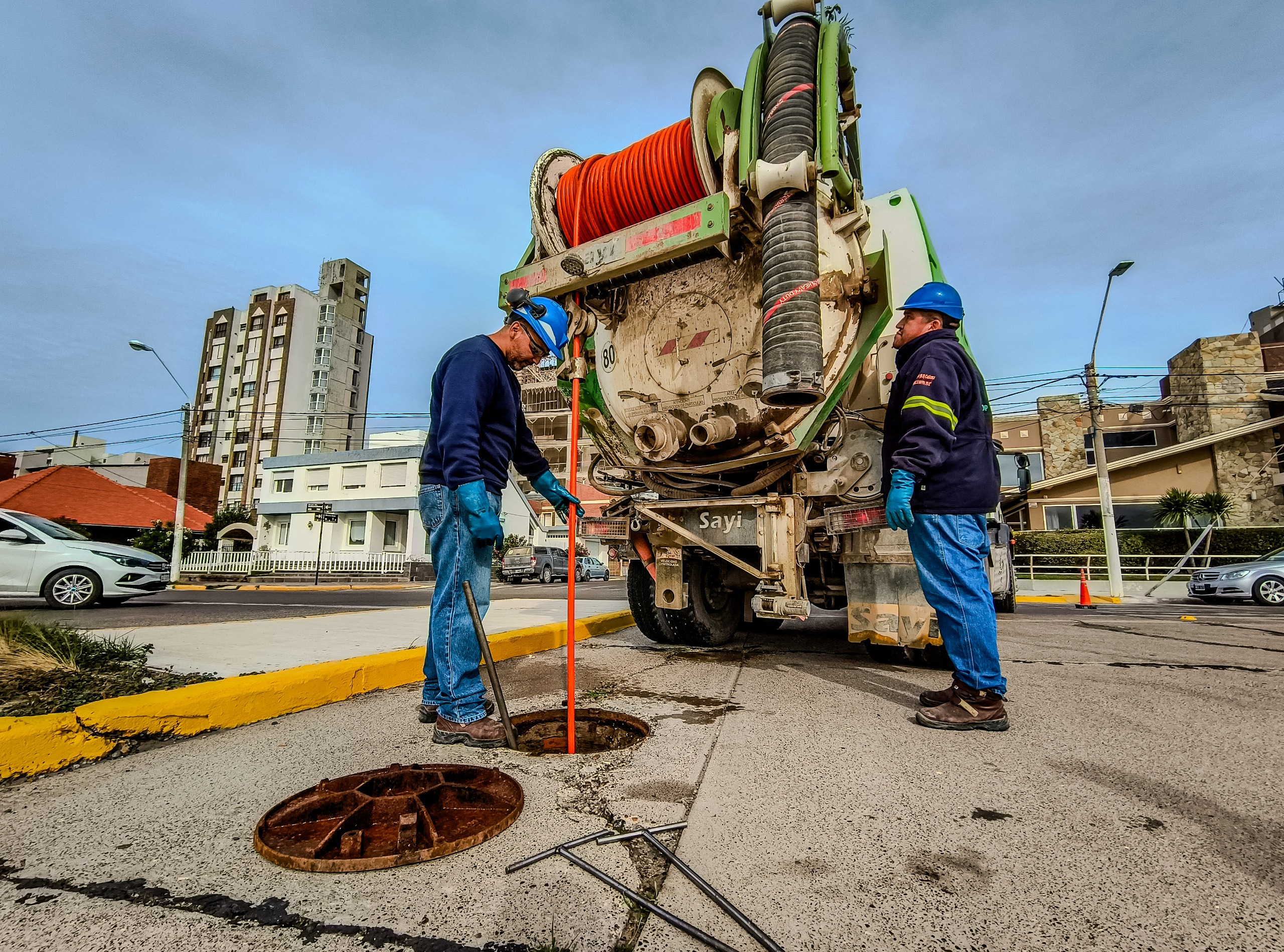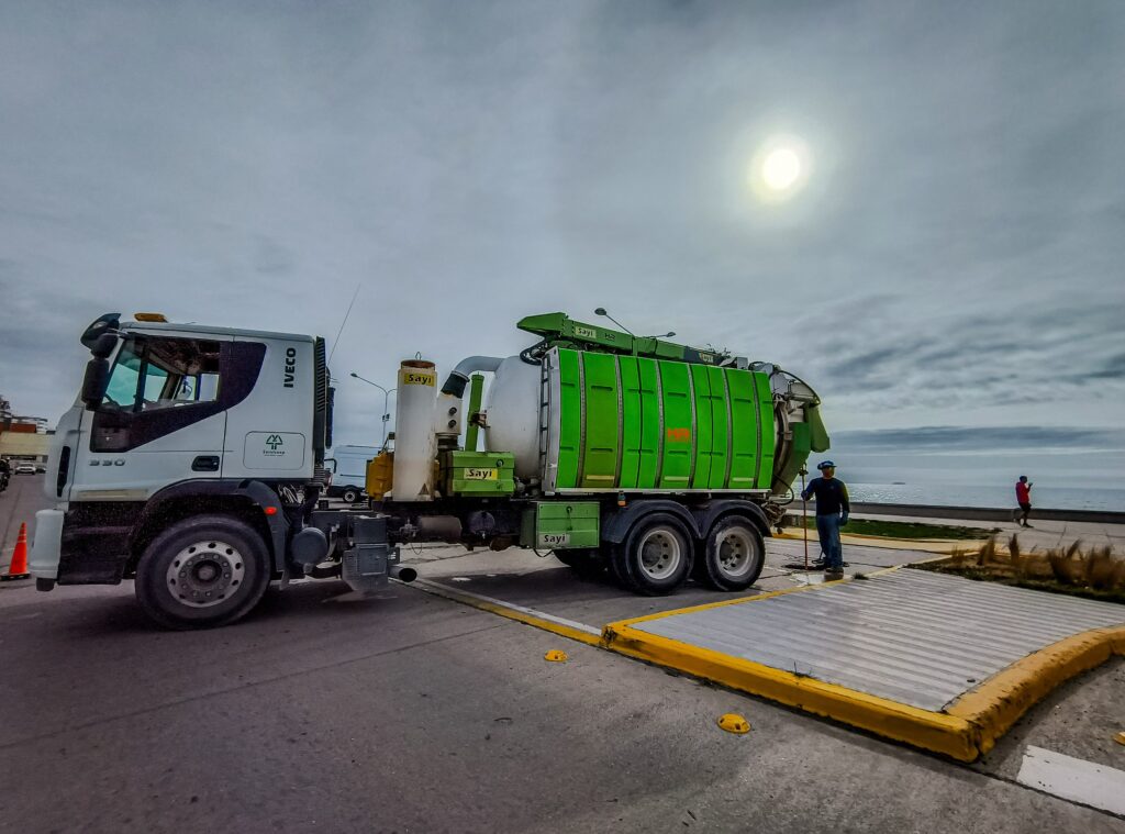 Nuestro personal de Saneamiento lleva adelante diariamente tareas de mantenimiento preventivo sobre el sistema cloacal. Estas tareas se intensifican los días que se esperan precipitaciones. En esta oportunidad se ejecutaron tareas en distintos puntos de los colectores cloacales de la costanera de la ciudad.