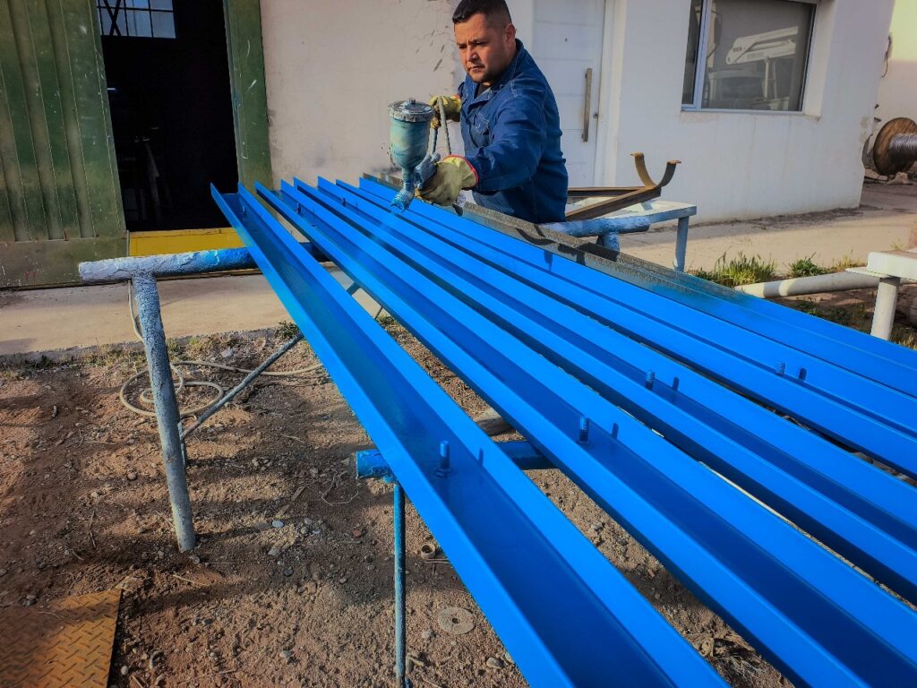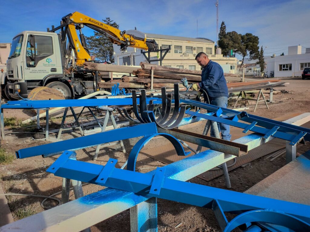 Las obras de energía proyectadas para el barrio “El Polígono” contemplan columnas de media y baja tensión, el tendido de redes de energía y la construcción de subestaciones. En nuestros talleres se lleva adelante la fabricación de la perfilería que soportarán los transformadores y también las puntas de las redes subterráneas que vincularán la Estación Transformadora, con las líneas de media tensión.