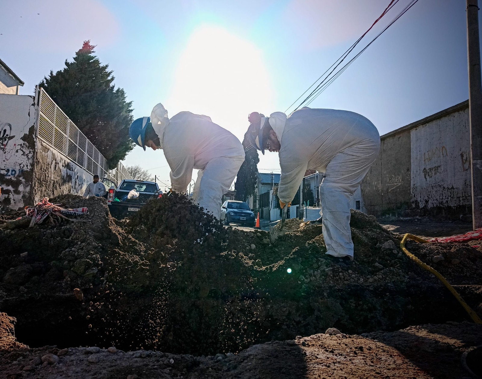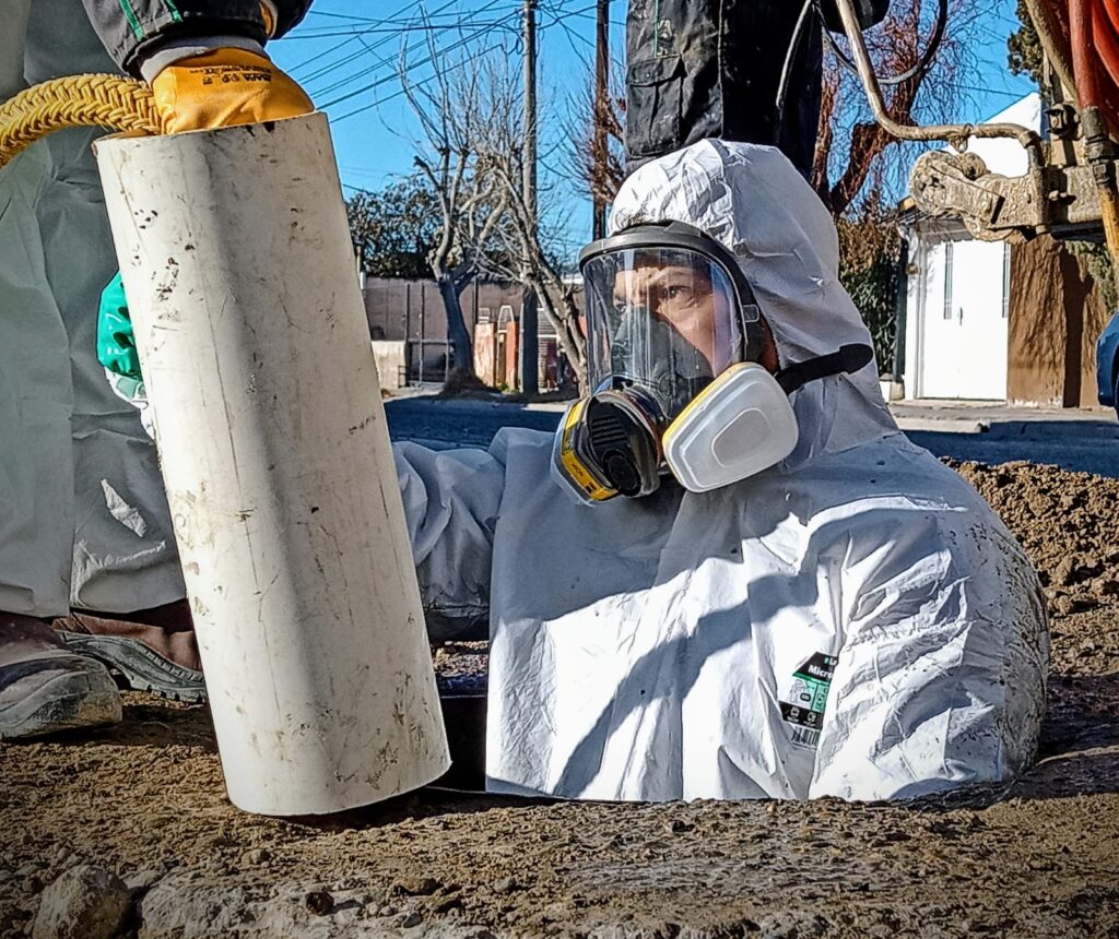 Otra de las tareas del sector es también la limpieza de las cámaras y para ello lo hacemos con un equipo autónomo de oxigeno, por seguridad, ya que hay presencia de gases que son extremadamente nocivos para la salud. Antes de bajar aplicamos un medidor de gases que nos indican el porcentaje de gases existente y además de un equipo especial de higiene y seguridad. Ingresamos con el camión, lavamos, desinfectamos y según la reparación que haya que hacer adentro, la realizamos. Estas tareas se ejecutan siempre con la supervisión del personal de Seguridad e Higiene de la Cooperativa.