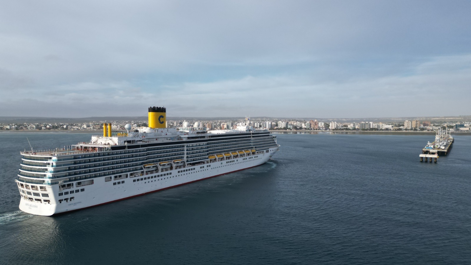 Por primera vez en la temporada, este martes por la mañana amarró sobre el lado sur del Muelle Comandante Luis Piedra Buena de Puerto Madryn el buque de pasajeros Costa Deliziosa, una imponente embarcación de bandera italiana con 294 metros de eslora.
