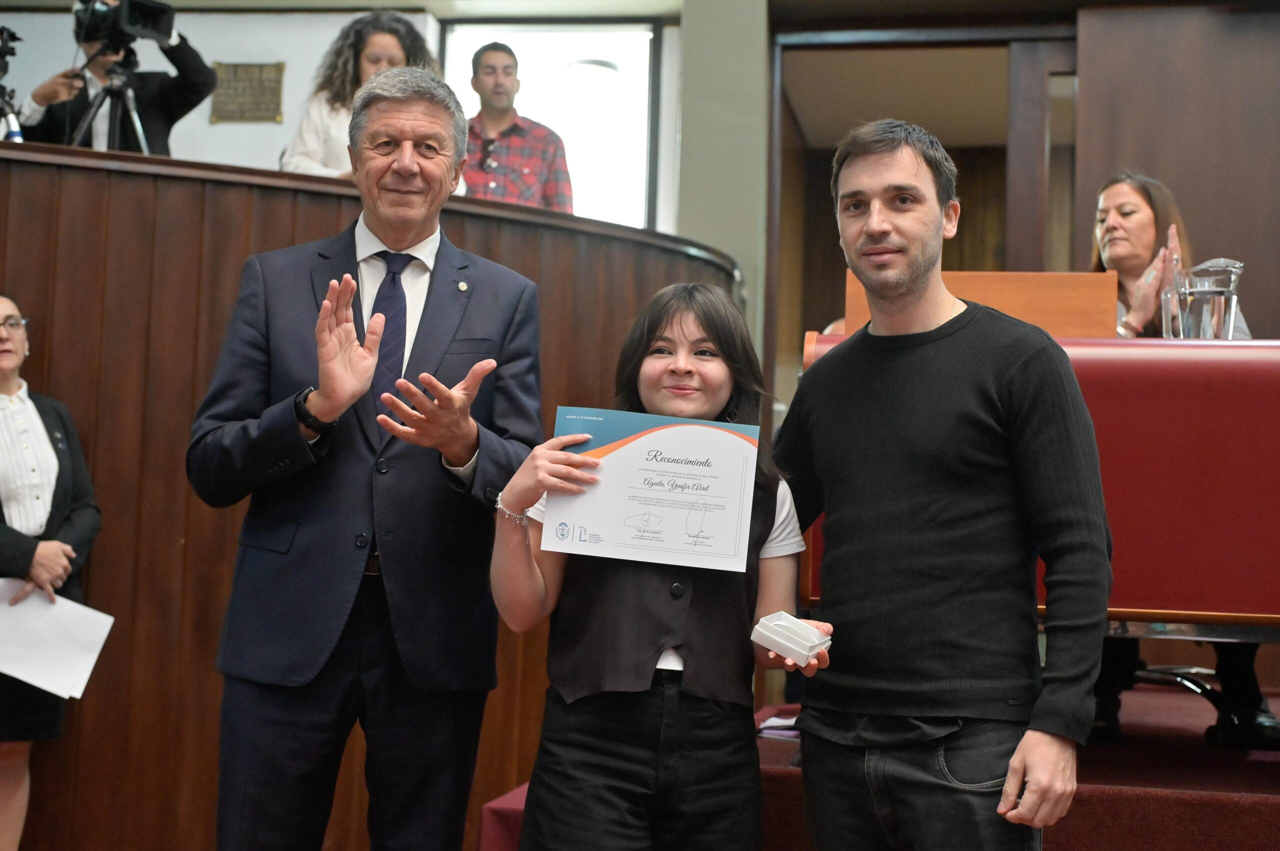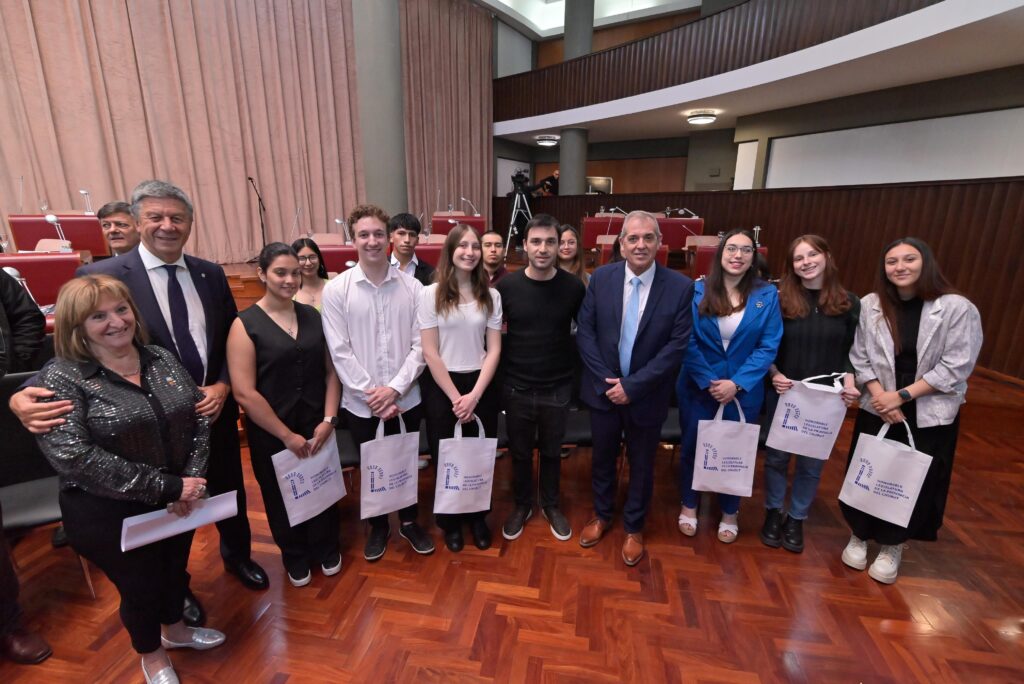 El gobernador de Chubut, Ignacio «Nacho» Torres, participó de la Sesión Especial de Reconocimiento a Mejores Promedios y Reconocimiento por Trayectoria Educativa, que se llevó a cabo este jueves por la mañana en la Honorable Legislatura. El mandatario, acompañado por el presidente de la Legislatura, Gustavo Menna, puso en valor la importancia de la formación académica y el desarrollo de un ciclo lectivo que, después de muchos años, comenzó en tiempo y forma en todo el territorio provincial.