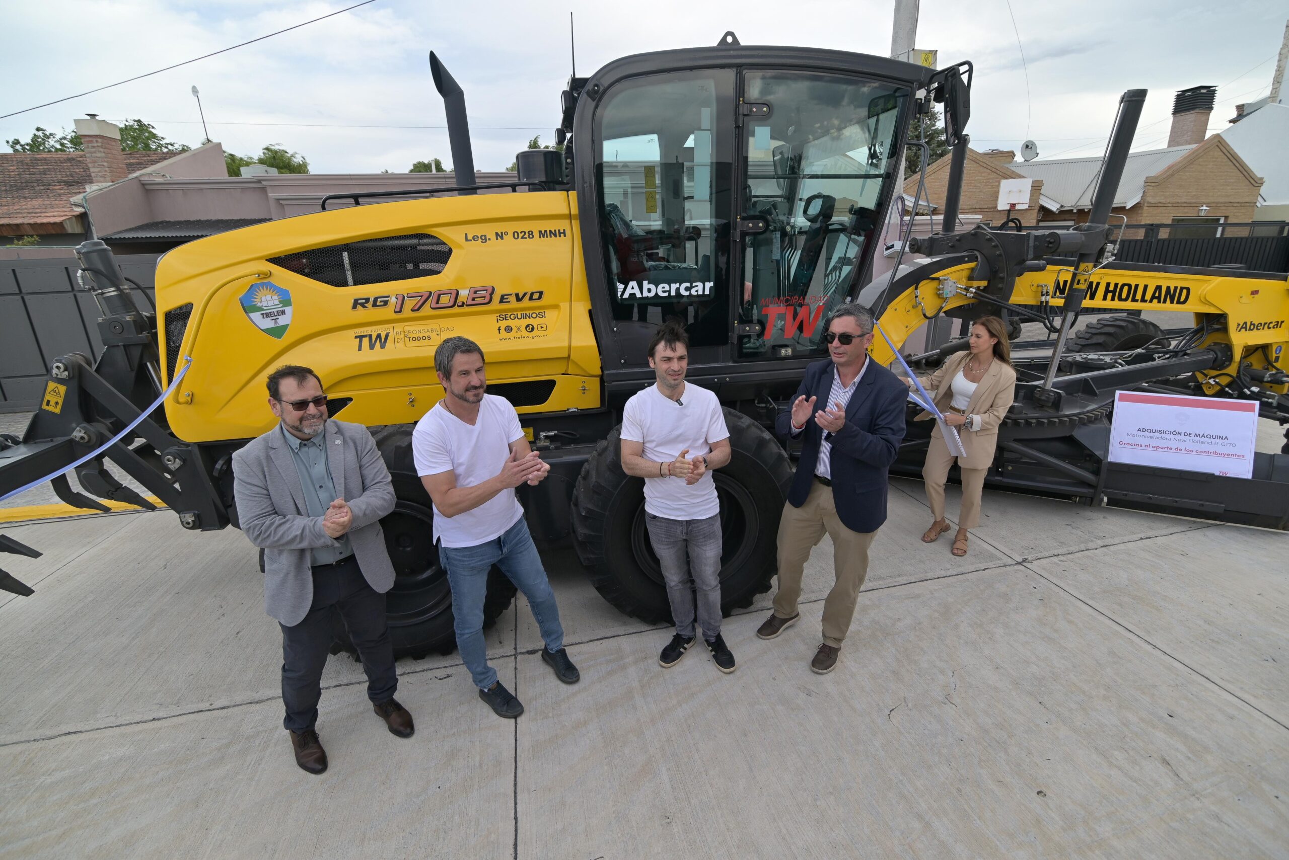 Seguidamente, el Gobernador junto al intendente Merino realizó el tradicional corte de cinta de la máquina Motoniveladora New Holland R-G 170, adquirida gracias a los aportes de los contribuyentes de la ciudad de Trelew.