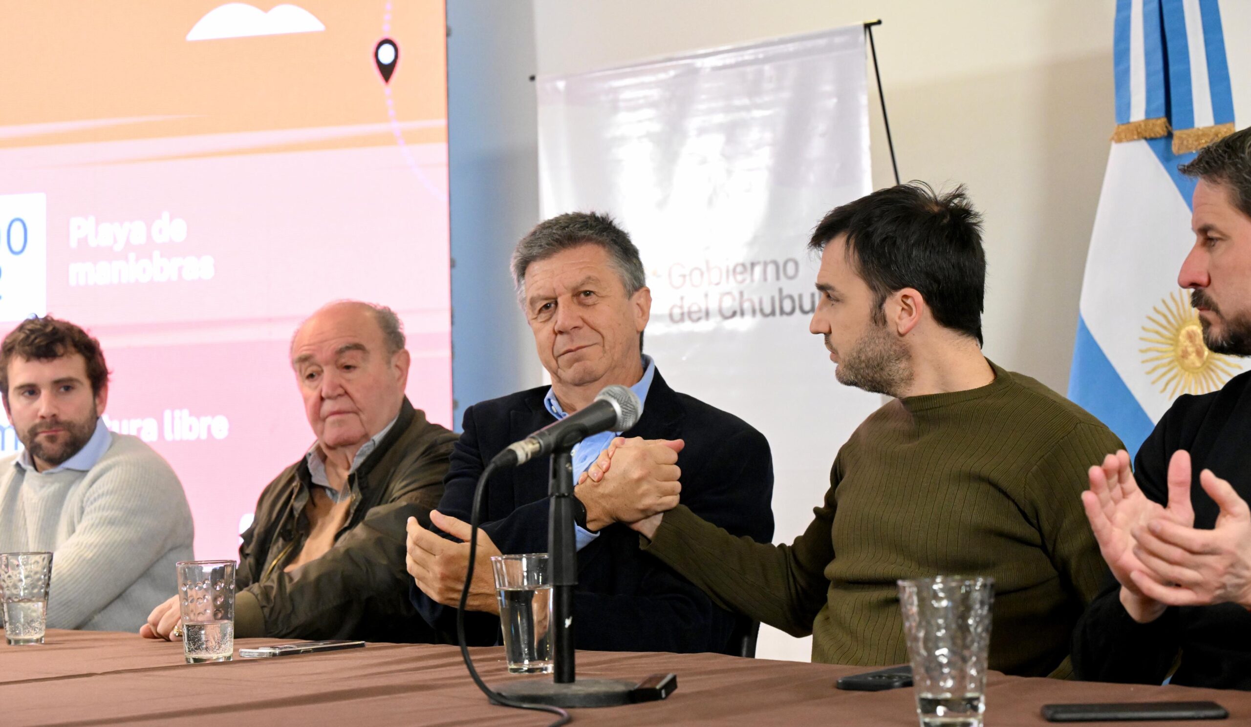 El anuncio tuvo lugar esta mañana en el Salón de Usos Múltiples de la Administración de Vialidad Provincial en Rawson, y contó con la participación del vicegobernador Gustavo Menna; el intendente de Trelew, Gerardo Merino; el presidente del Banco del Chubut, Paulino Caballero y el senador nacional, Carlos Linares. En representación del Grupo Veneroni – Distribuidora del Valle, estuvieron presentes su titular, Carlos Veneroni; el administrador del Centro de Distribución, Tomás Carrascal; y el gerente de la empresa Daniel Pato.