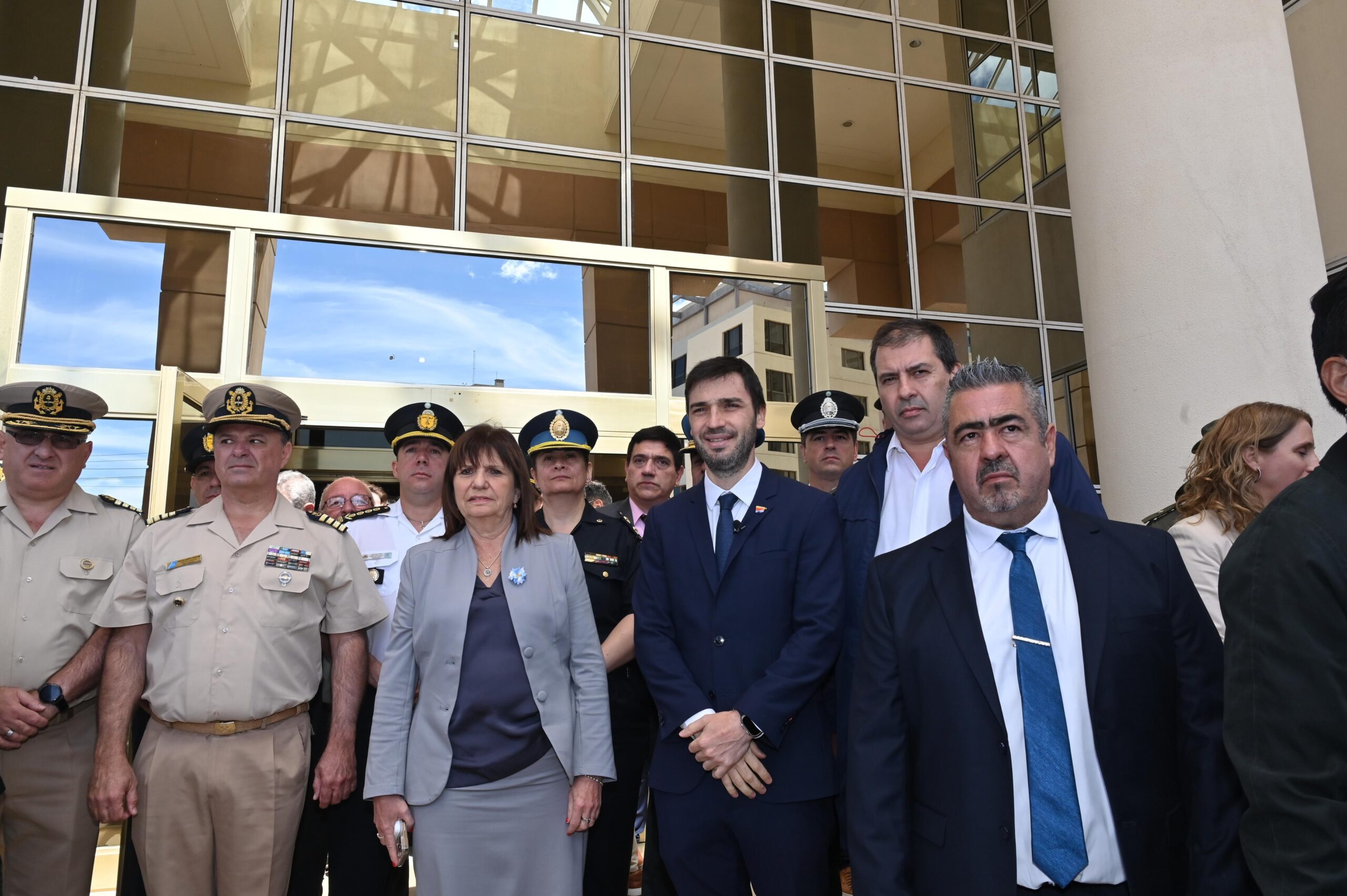 La titular de la cartera de Seguridad nacional destacó los alcances del Comando Unificado que se pone en marcha en el sur de Chubut, así como “la tarea conjunta con la Justicia, porque detrás de cada allanamiento, de cada procesamiento, está el fiscal, el juez, la Cámara y el Tribunal de Casación. Por eso es tan importante que estén hoy aquí y que estemos anunciando el Sistema Acusatorio aquí en la región judicial”.