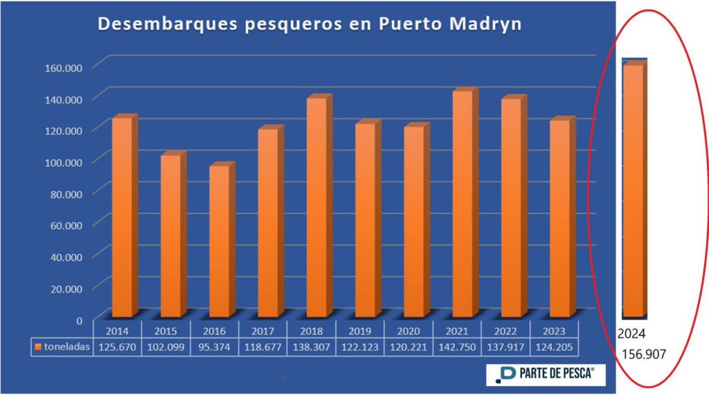 De acuerdo a los datos oficiales, la ciudad de Puerto Madryn alcanzó durante 2024 los mayores niveles de desembarques de la región patagónica y marcó un récord histórico con 156.907 toneladas.