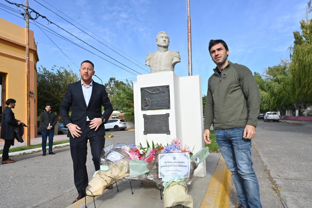 Durante el acto, se colocaron ofrendas florales en memoria de los ciudadanos dolavenses fallecidos, en el busto ubicado en la plazoleta frente al Concejo Deliberante. También, se conmemoró el aniversario de la Escuela N° 101 de Dolavon.