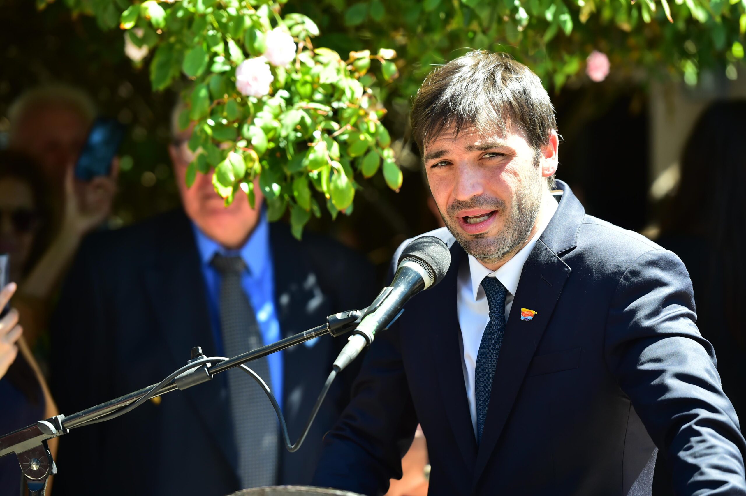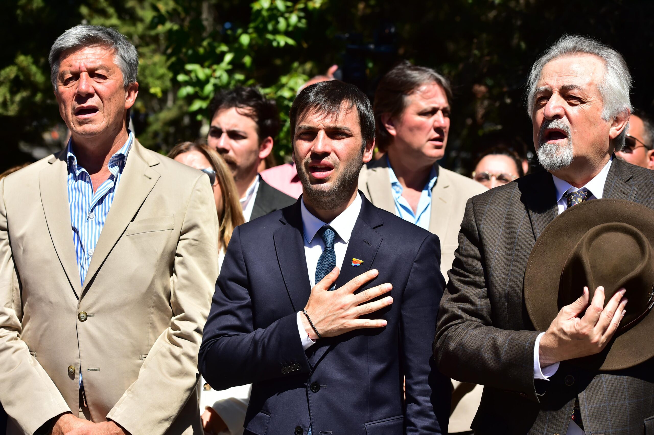 En esta ocasión acompañaron al mandatario el intendente local, Othar Macharashvili, y el viceintendente Maximiliano Sampaoli; la intendenta de Rada Tilly, Mariel Peralta; la jefa comunal de Aldea Beleiro, Patricia Tapia; el vicegobernador Gustavo Menna; los ministros de Educación, José Luis Punta; de Hidrocarburos, Federico Ponce; el secretario Coordinador de Gabinete, Guillermo Aranda; funcionarios del Gabinete Provincial; la diputada nacional Ana Clara Romero, la senadora Andrea Cristina; diputados provinciales y concejales; la presidenta de Fedecomex, Marta Mañas de Pazos; representantes de las empresas YPF, PAE y Schlumberger y del Instituto Argentino del Petróleo y del Gas; el secretario General del Sindicato del Petróleo y Gas Privado del Chubut, Jorge «Loma» Ávila; reinas y princesas de la Asociación de Provincianos, abanderados escolares; el presidente del Centro de Jubilados de YPF, Miguel Scaruli; el dirigente sindical de petroleros Mario «Chorizo» Quinteros; y, por parte de la Universidad Nacional de la Patagonia «San Juan Bosco», el rector Walter Carrizo; la secretaria General Liliana Barrionuevo, el secretario de Extensión Universitaria, Diego Lazzarone, la secretaria de Ciencia y Técnica, Mónica Freyre, la decana de Ciencias Naturales y de la Salud, Olga Herrera; la vicedecana Susana Perales, y la decana de Humanidades y Ciencias Sociales, Susana Vidoz.