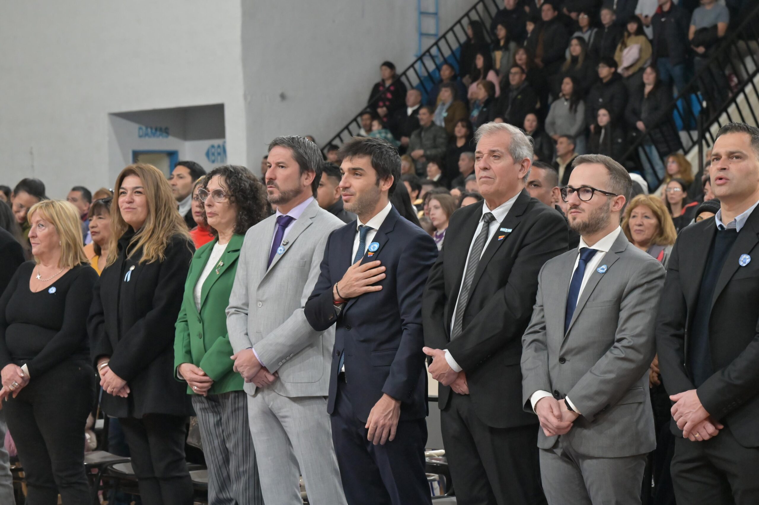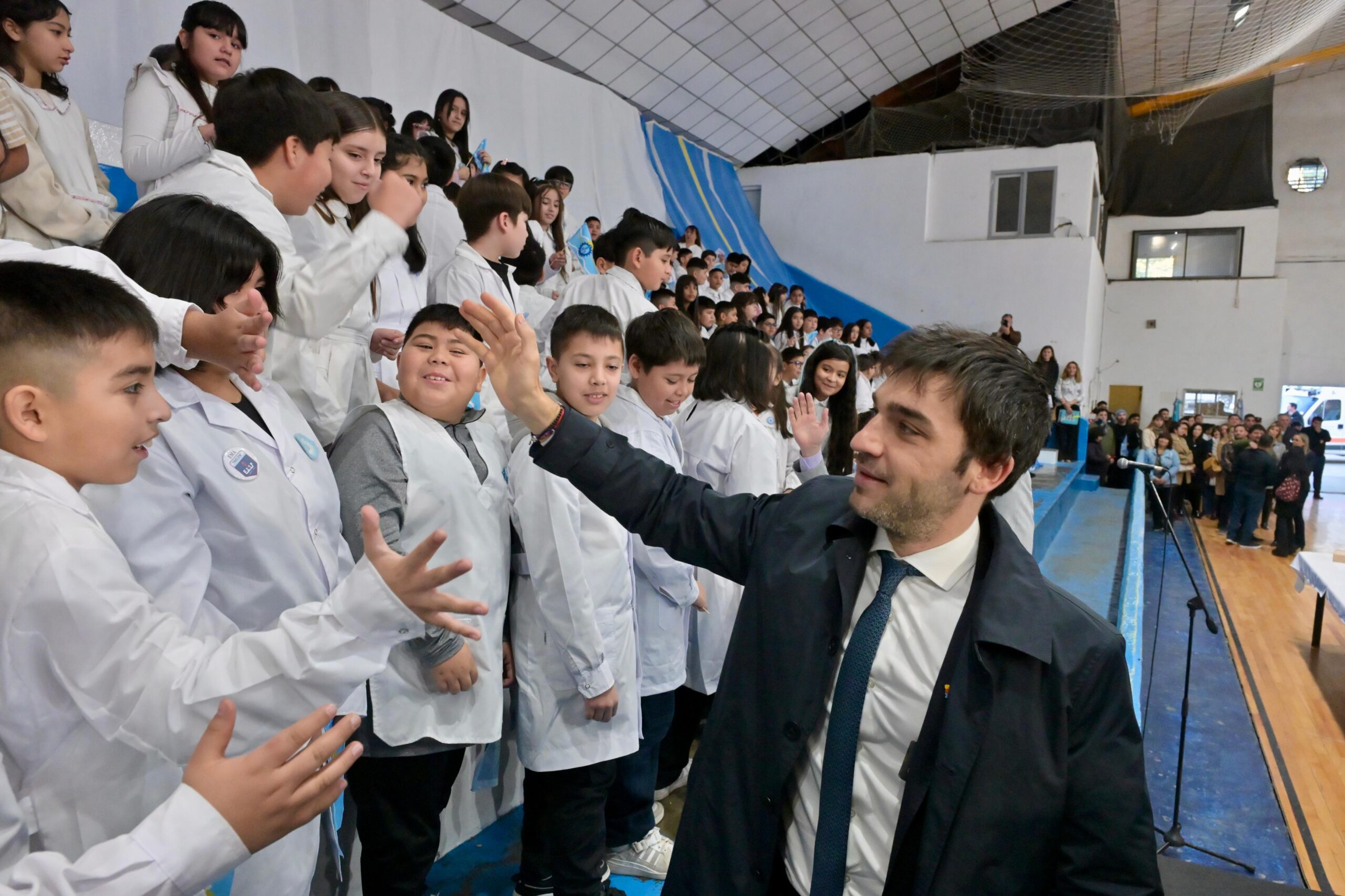 «Lo más importante, más allá del conocimiento que se adquiere a diario en la escuela, es formarse como buenas personas, con los valores que nos caracterizan como chubutenses y el profundo orgullo de ser parte de esta generación, de la cual el día de mañana surgirán los futuros líderes», señaló el mandatario, añadiendo que «cada generación tiene la responsabilidad moral de superar a las anteriores, por eso quiero felicitar a los estudiantes y al cuerpo docente por este compromiso».