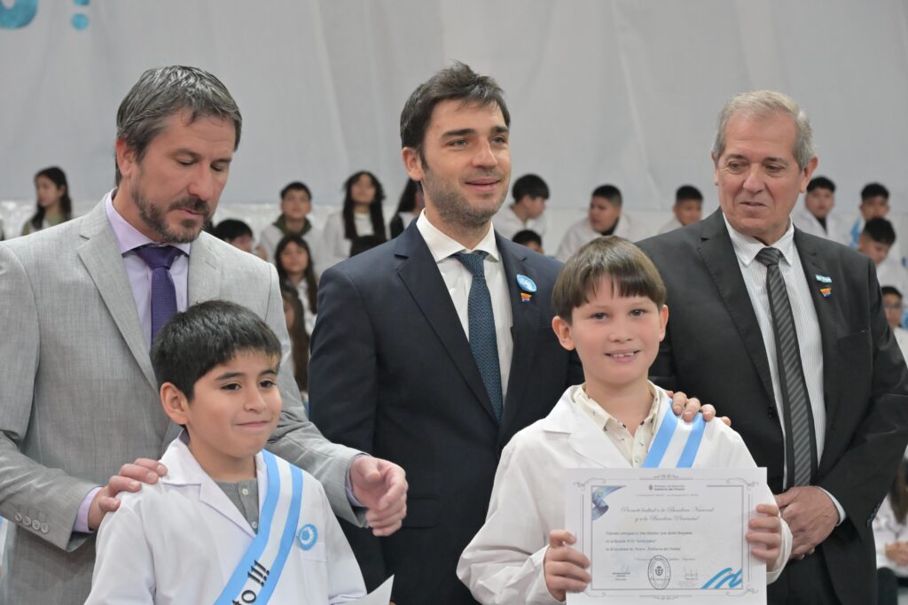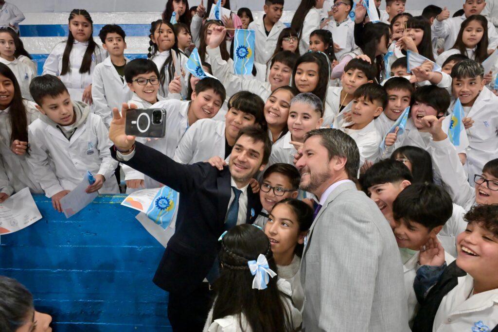 El mandatario provincial también tomó juramento de lealtad a la Bandera de Chubut, a estudiantes de 4°, 5° y 6° grado, en el marco de una ceremonia realizada por primera vez en la provincia, a partir de la implementación de la Ley VIII N° 149/25. «Esta bandera simboliza nuestro presente, en el que día a día debemos conquistar el conocimiento que nos libera, nuestro futuro y el de nuestros hijos y las sucesivas generaciones de argentinos», sostuvo Torres durante la emotiva ceremonia, destacando que «esta ceremonia nos invita a querernos, con tolerancia y respeto, sobre todo en un momento donde tenemos que ser conscientes de que la educación crea ciudadanía».