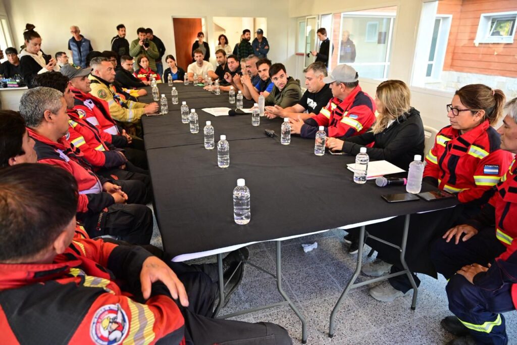 El encuentro tuvo lugar en la Subcentral de Coordinación y Despacho de Brigadistas – Las Golondrinas, y acompañaron al mandatario funcionarios del Gabinete provincial que se encuentran haciendo base en la zona afectada, entre ellos el ministro de Seguridad y Justicia, Héctor Iturrioz; la ministra de Desarrollo Humano, Florencia Papaiani; el ministro de Turismo, Diego Lapenna; el ministro de Producción, Juan Pavón; el secretario de Bosques, Abel Nievas; el secretario de Infraestructura, Hernán Tórtola; el subsecretario de Protección Civil, Eduardo “Lalo” Pérez; los intendentes de Epuyén, José Contreras, y de El Hoyo, César Salamín; el presidente de Chubut Deportes, Milton Reyes; brigadistas nacionales, de Chubut y de otras provincias.