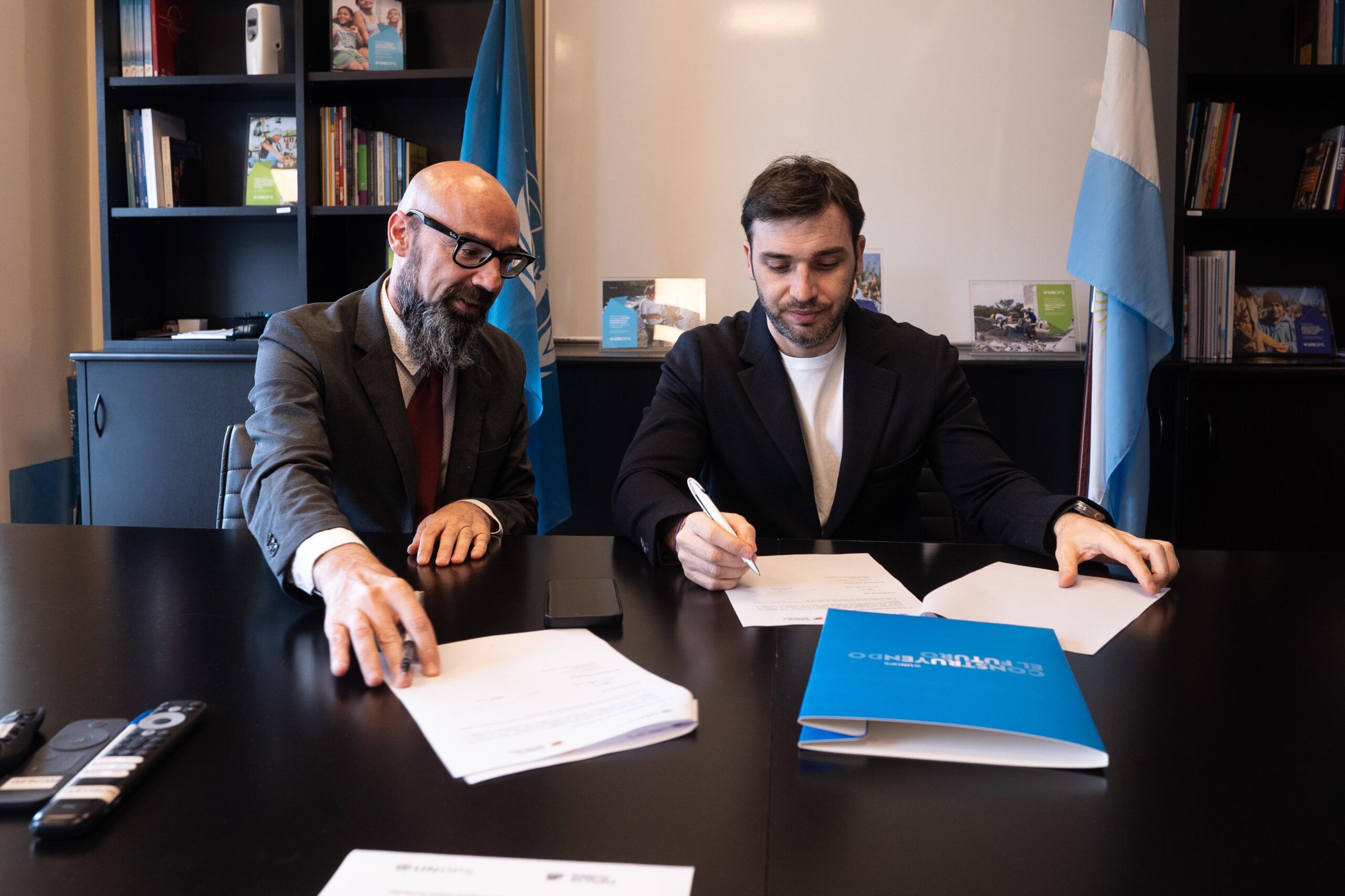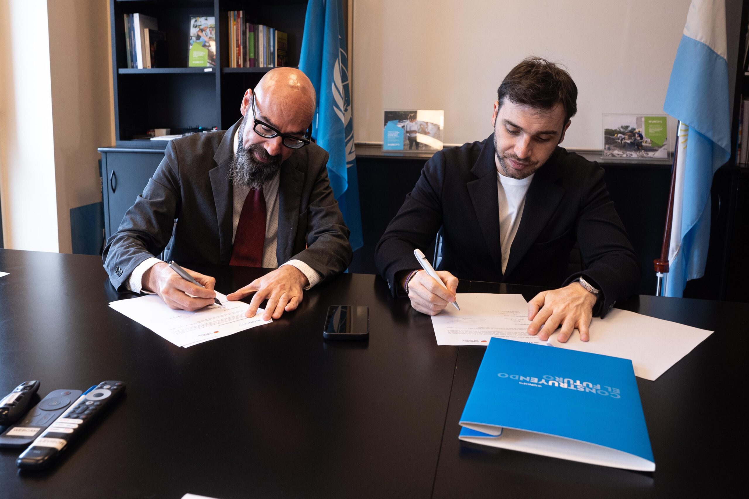 La firma en cuestión fue realizada este viernes por la tarde en las oficinas del organismo operacional de Naciones Unidas, en Buenos Aires, y además del titular del ejecutivo chubutense también estuvieron presentes el director de Proyectos de Implementación Nacional de UNOPS, Horacio Tamburrini; el gerente de Proyecto, Pedro Garrigou; la gerente adjunta de Proyecto UNOPS, Celeste Tauzin Romeo, y el oficial a cargo de UNOPS para Argentina y Uruguay, Ignacio Lacasta Casal.