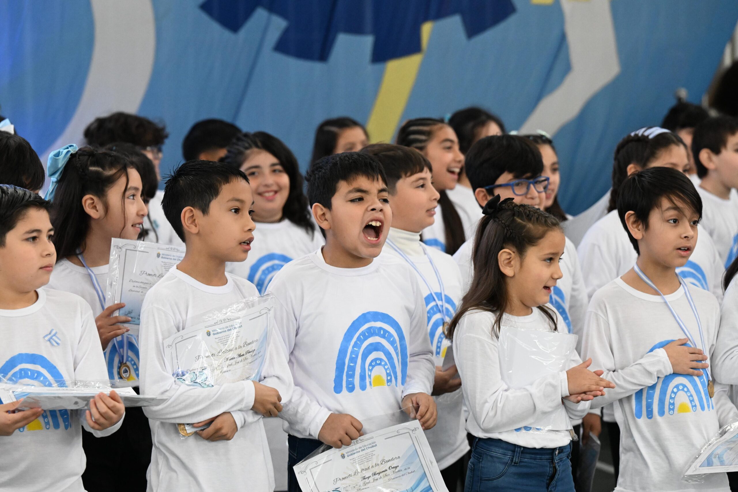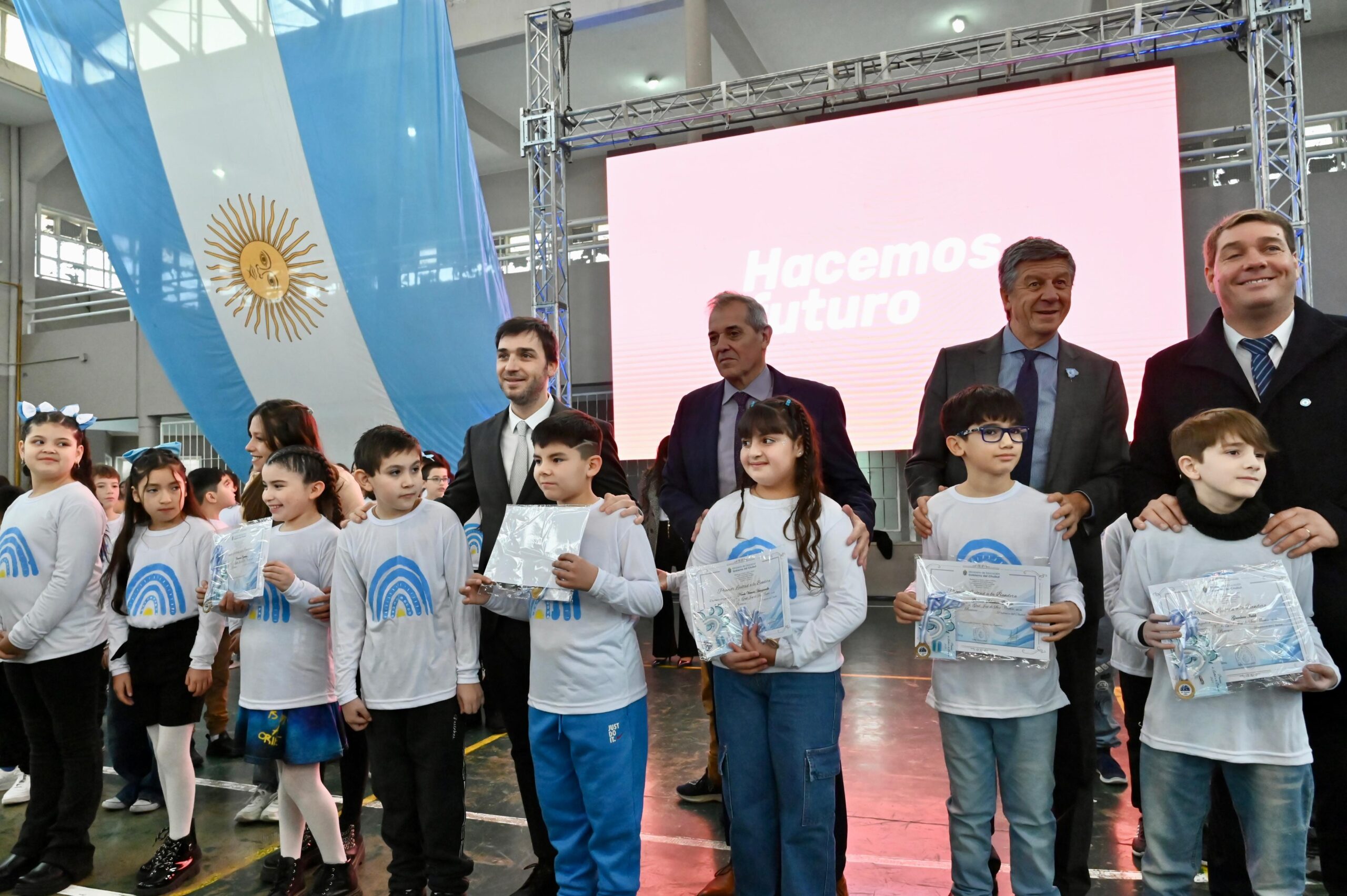 En su discurso, frente a un salón colmado de directivos, familiares, funcionarios y toda la comunidad educativa, el mandatario les expresó puntualmente a los estudiantes “que la escuela es fundamental porque construye ciudadanía” y que “detrás de la bandera hay cimientos morales y éticos que se aprenden en la escuela, en la familia, con amigos y ayudando a compañeros”.