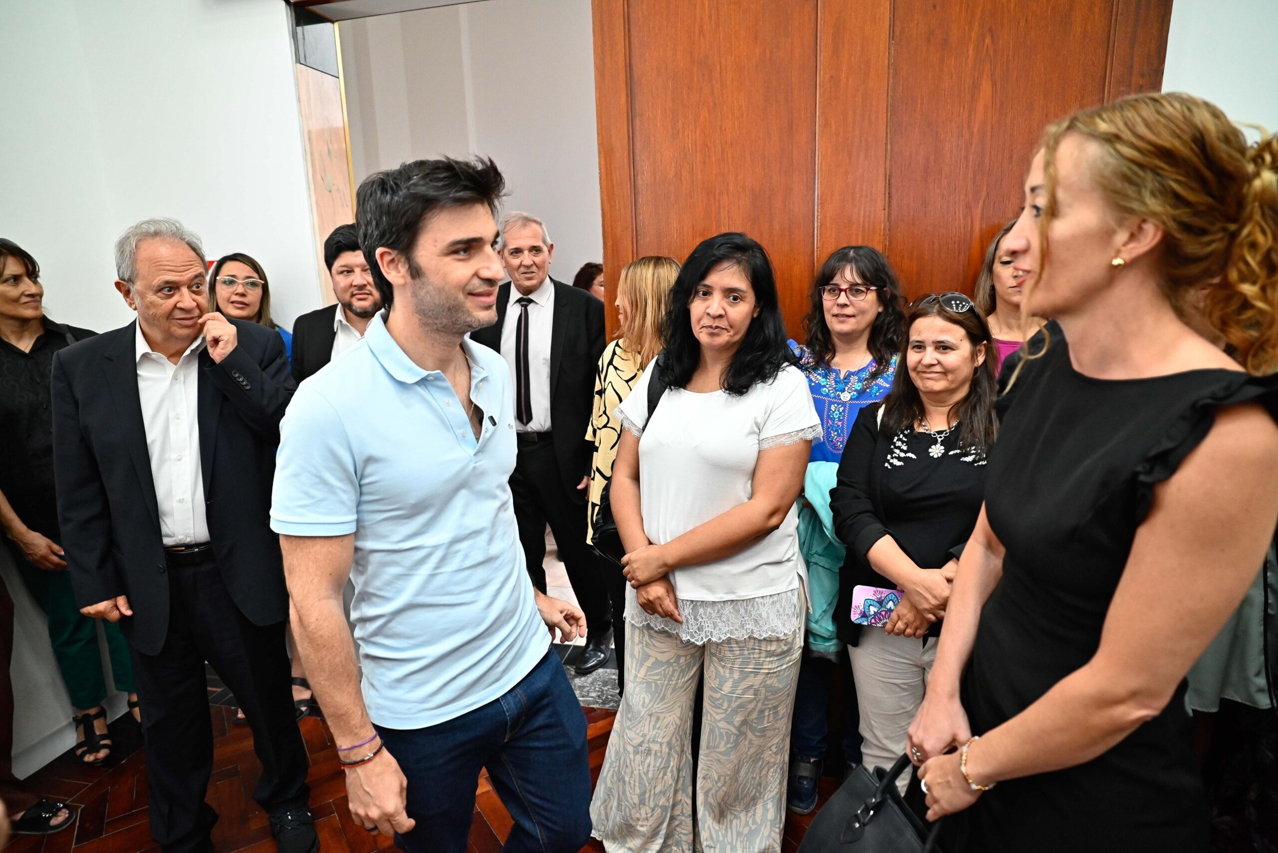 La actividad se desarrolló pasadas las 17 horas en el Salón de los Constituyentes y el mandatario estuvo acompañado por el ministro de Educación del Chubut, José Luis Punta; la presidente de la Fundación Banco del Chubut Ornella Costa; Alberto Pierri, titular de Telecentro S.A., y Diego Magallanes, gerente de Comercialización de la empresa, además de representantes de medios nacionales como Canal 26, que acompañan la cobertura de esta iniciativa.