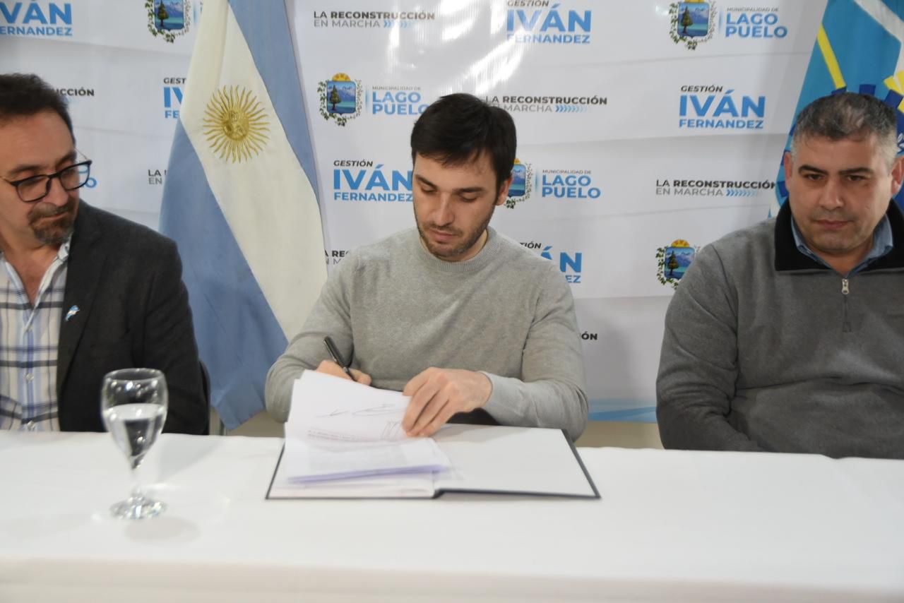 Al momento de la firma estuvieron presentes también el intendente de El Hoyo, César Salamín, y su par de Lago Puelo, Iván Fernández; la ministra de Desarrollo Humano, Florencia Papaiani; el presidente de la Administración de Vialidad Provincial, Hernán Tórtola; el presidente de Lotería, Ramiro Ibarra; el subsecretario de Asuntos Municipales, Genaro Pérez; el director general del Ministerio de Gobierno Regional Comarca Andina, Horacio Leiva; e intendentes y jefes comunales de la región.