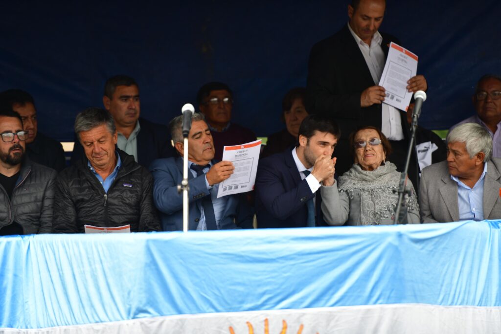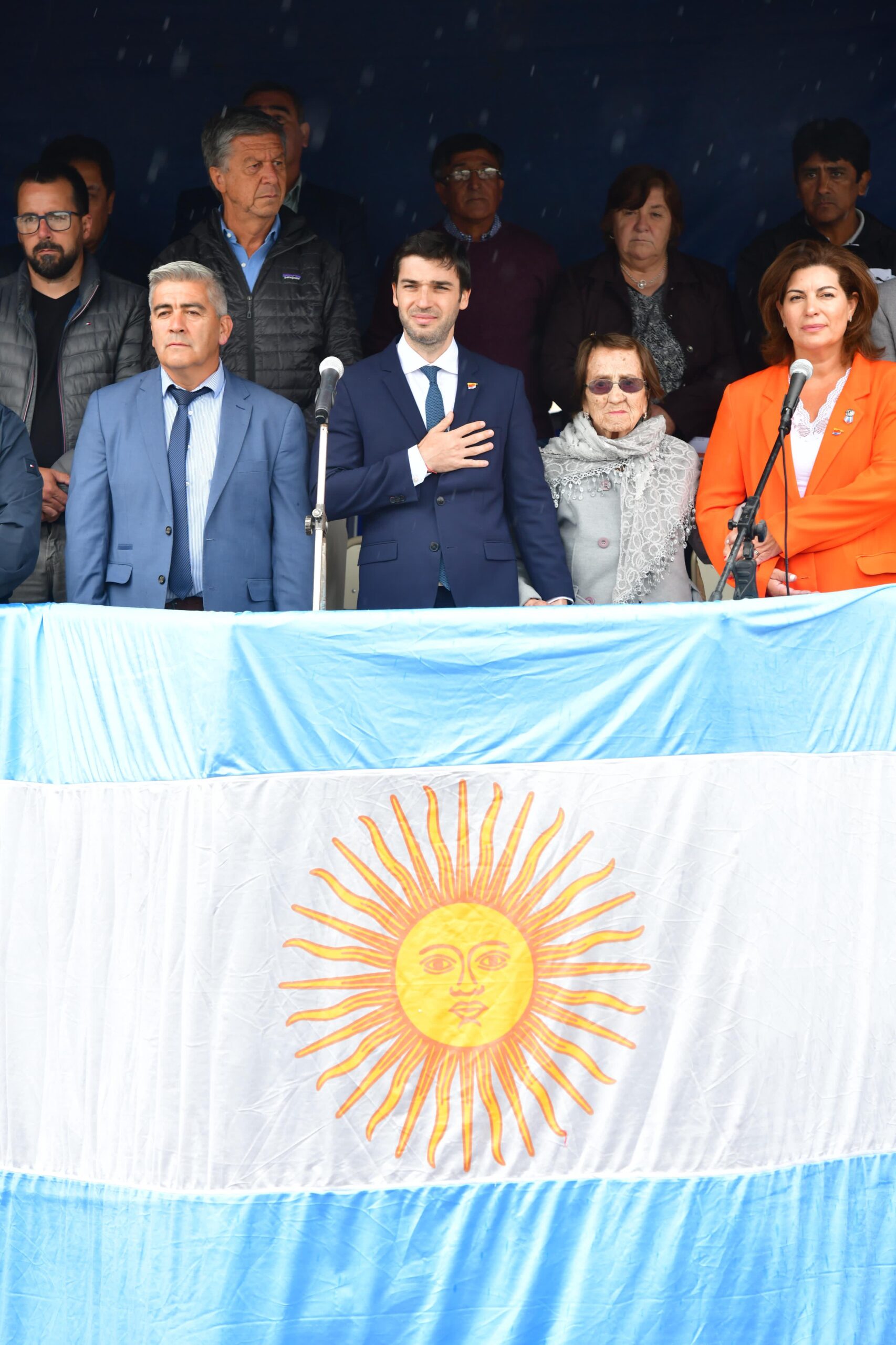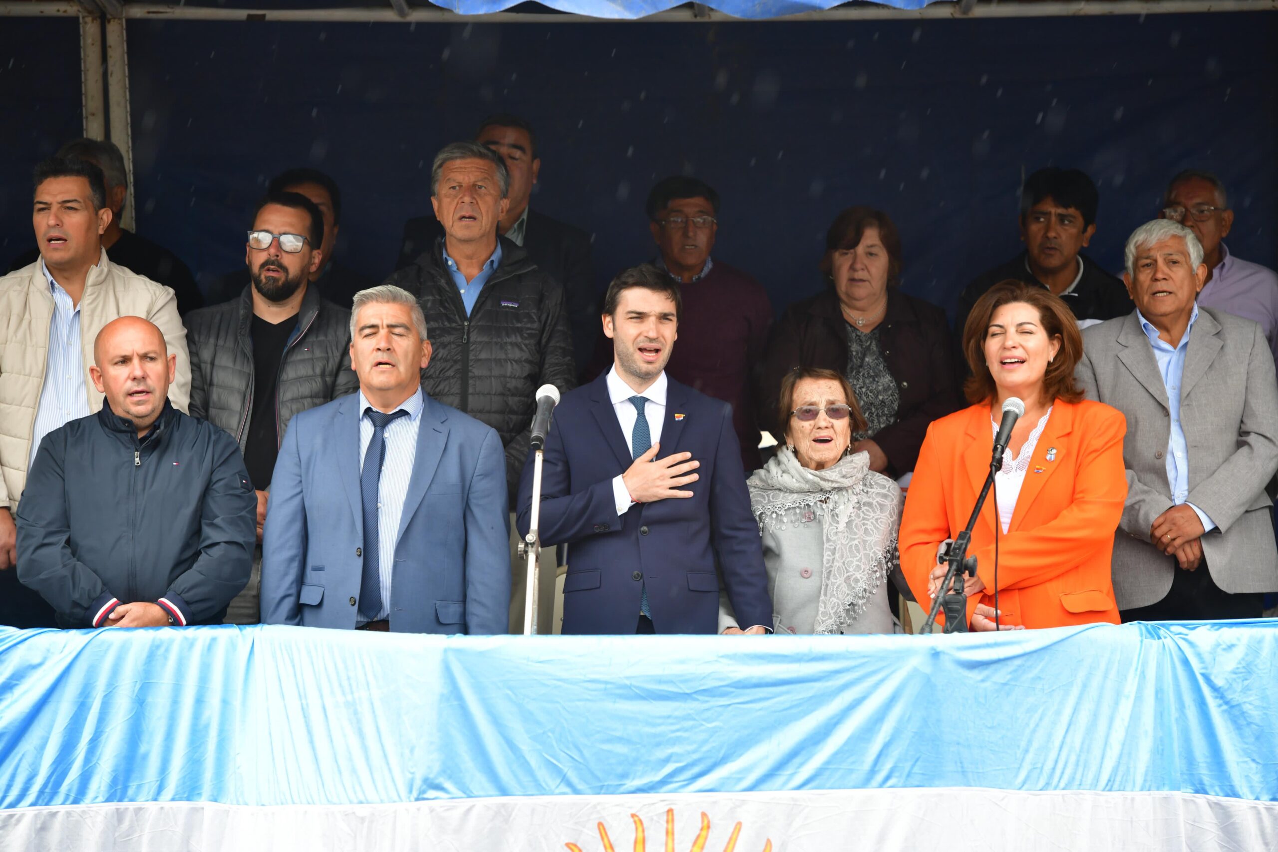 Seguidamente, el Gobernador expresó: «Hoy estamos celebrando tres cosas sumamente importantes: cien años de un pueblo que hace patria en la República Argentina, que es sinónimo de trabajo y esfuerzo; la defensa de la autonomía federal de nuestra provincia; y, por primera vez en la historia de Chubut, estamos escuchando el Himno Provincial».