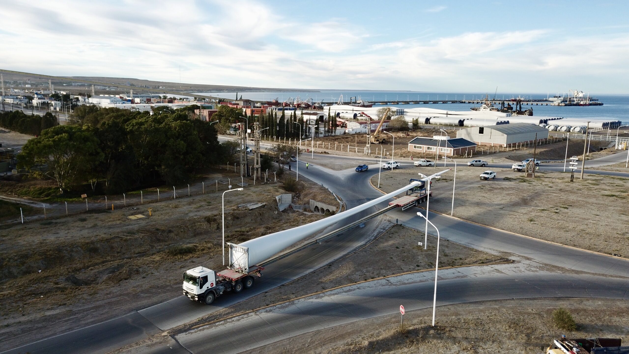Aluar informa que a partir del lunes 24 de febrero comenzarán los traslados de los componentes de los aerogeneradores (palas, nacelle, etc.) para 17 aerogeneradores, correspondientes a la Etapa II Fase IV del Parque Eólico Aluar. Los mismos se trasportarán desde el Muelle Almirante Storni al Parque Eólico Aluar por el Parque Industrial Pesado (Ruta A010 continuando por Ruta Provincial N°4 hasta ingreso al predio del Parque) de lunes a sábado, en las franjas horarias comprendidas entre las 08:00 y las 14:00 horas.
