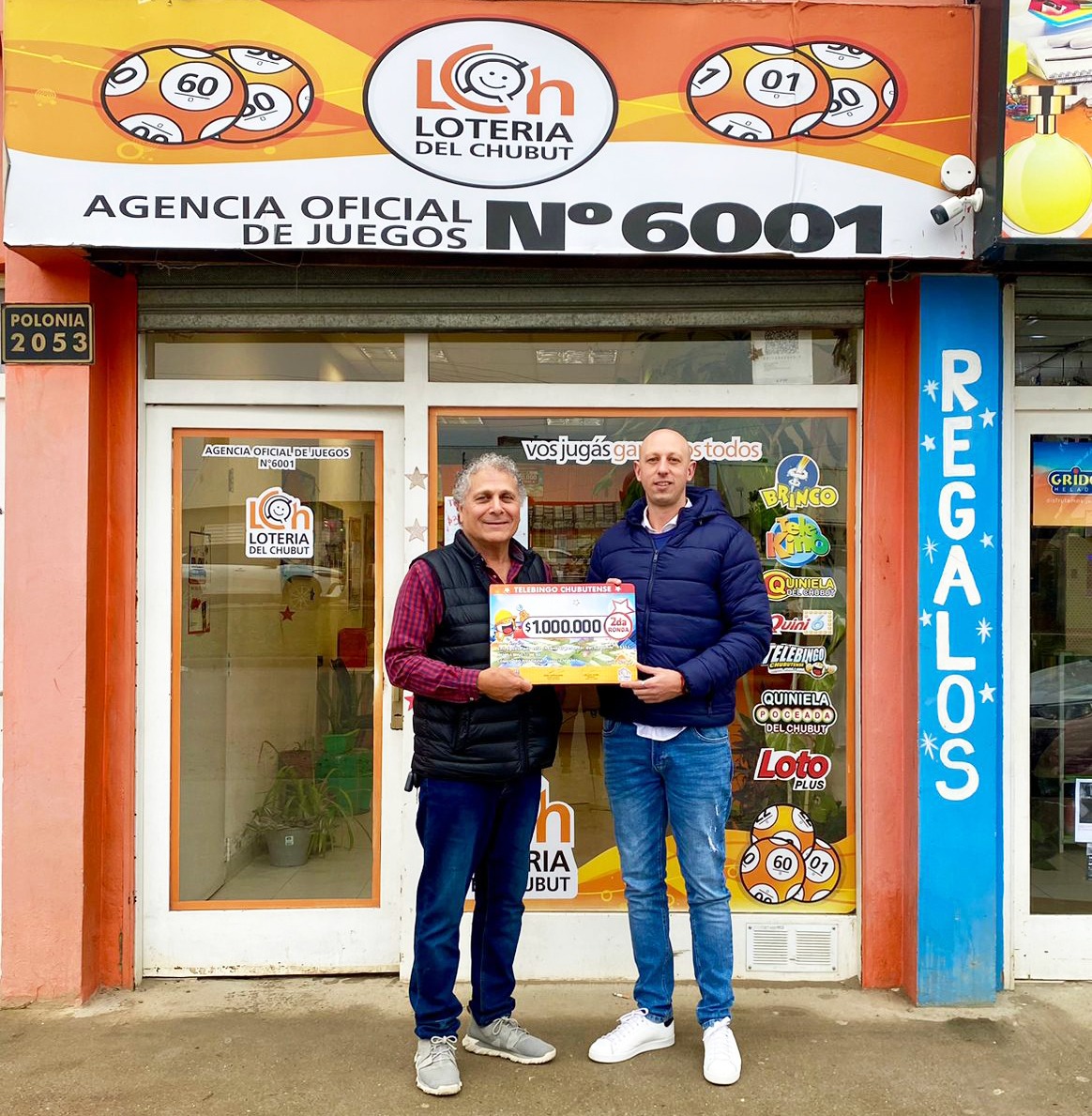La entrega simbólica del cheque ganador fue realizada recientemente por el gerente zonal de Lotería del Chubut, Damián Pieroni, y tuvo lugar en la Agencia 6001 de Héctor Chaile, vendedor del número ganador.