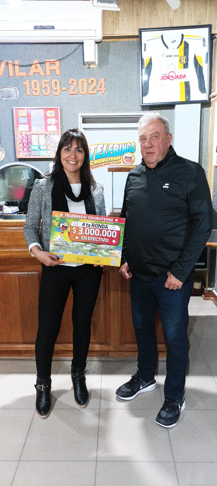 El premio fue entregado de manera simbólica por la delegada zonal de Lotería del Chubut, Aidú Iriarte, en la Agencia 5002 de Raúl Vilar de la ciudad del golfo.