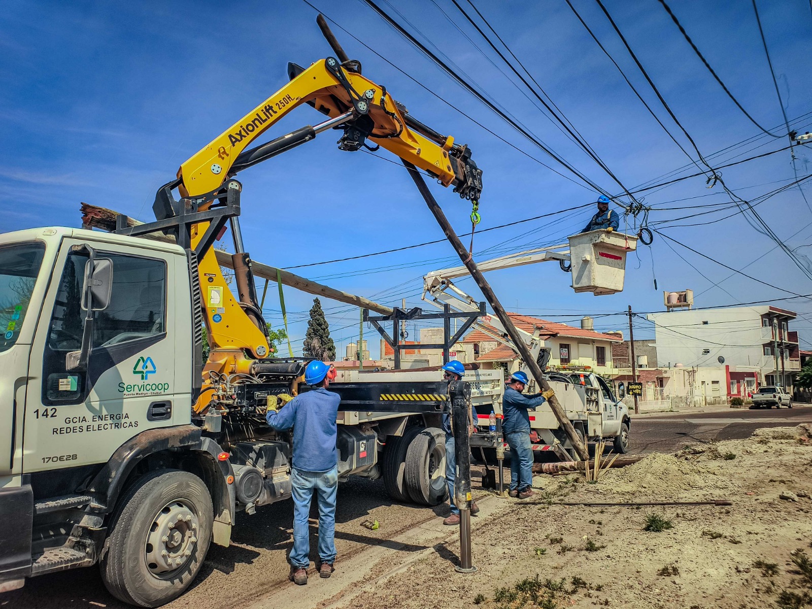 En la madrugada de hoy, un vehículo particular, colisionó un poste perteneciente al tendido eléctrico de baja tensión, en la intersección de las calles Menéndez y Pujol. Luego de hacer un analisis de los daños, nuestro personal de energía realizó el recambio del poste afectado y la normalización del tendido eléctrico.