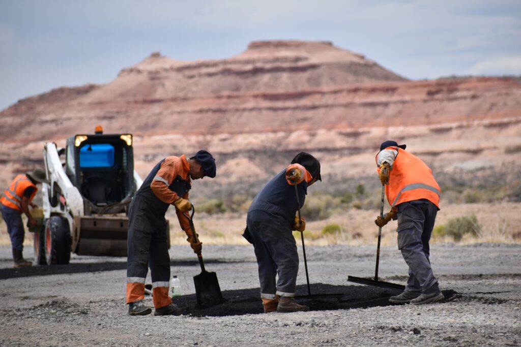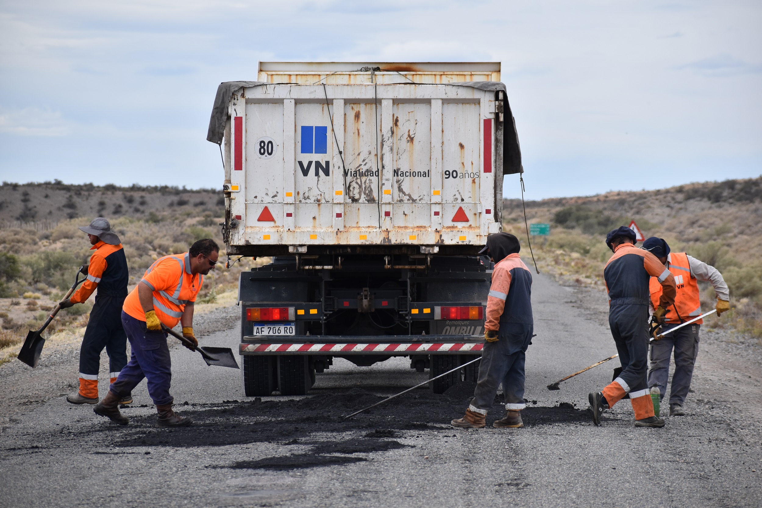 Las tareas, que se llevan a cabo con material asfáltico caliente elaborado en la propiaPlanta de asfalto de Vialidad Nacional ubicada en el campamento de Tecka, sedesarrollan en diferentes sectores.