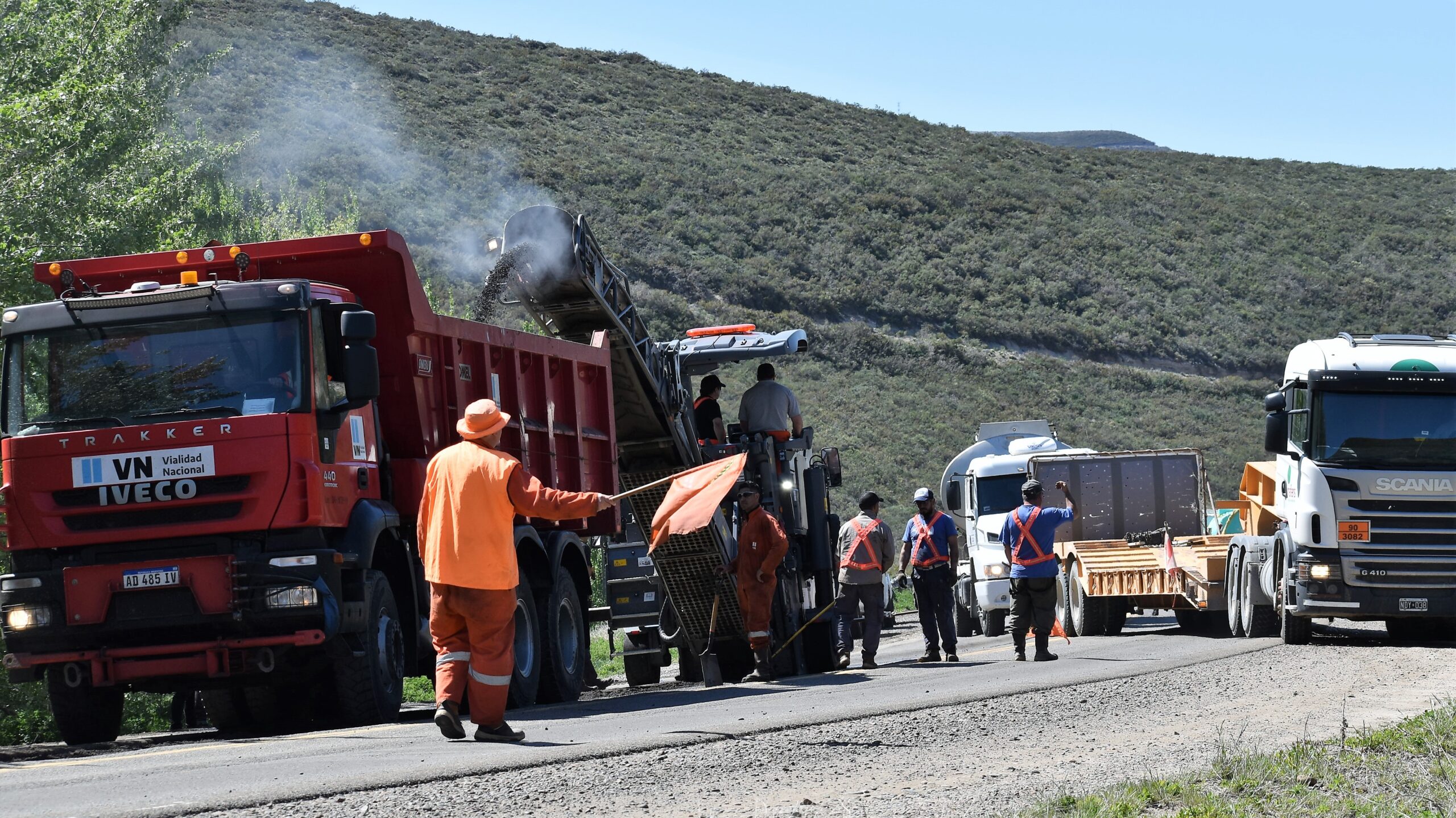 Las tareas consisten en el fresado de las deformaciones de la calzada entre los kilómetros 1794 y 1810 de la RN 3, en la zona del Cañadón Ferrays.