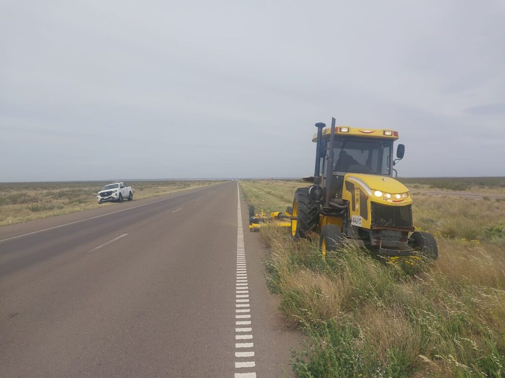 Vialidad Nacional, a través del 13° Distrito Chubut, informa que con personal y maquinaria propia realiza el desmalezado y corte de pasto de banquinas y zona de camino en la Ruta Nacional 3, entre la ciudad de Puerto Madryn y Arroyo Verde, acceso norte a esta provincia.