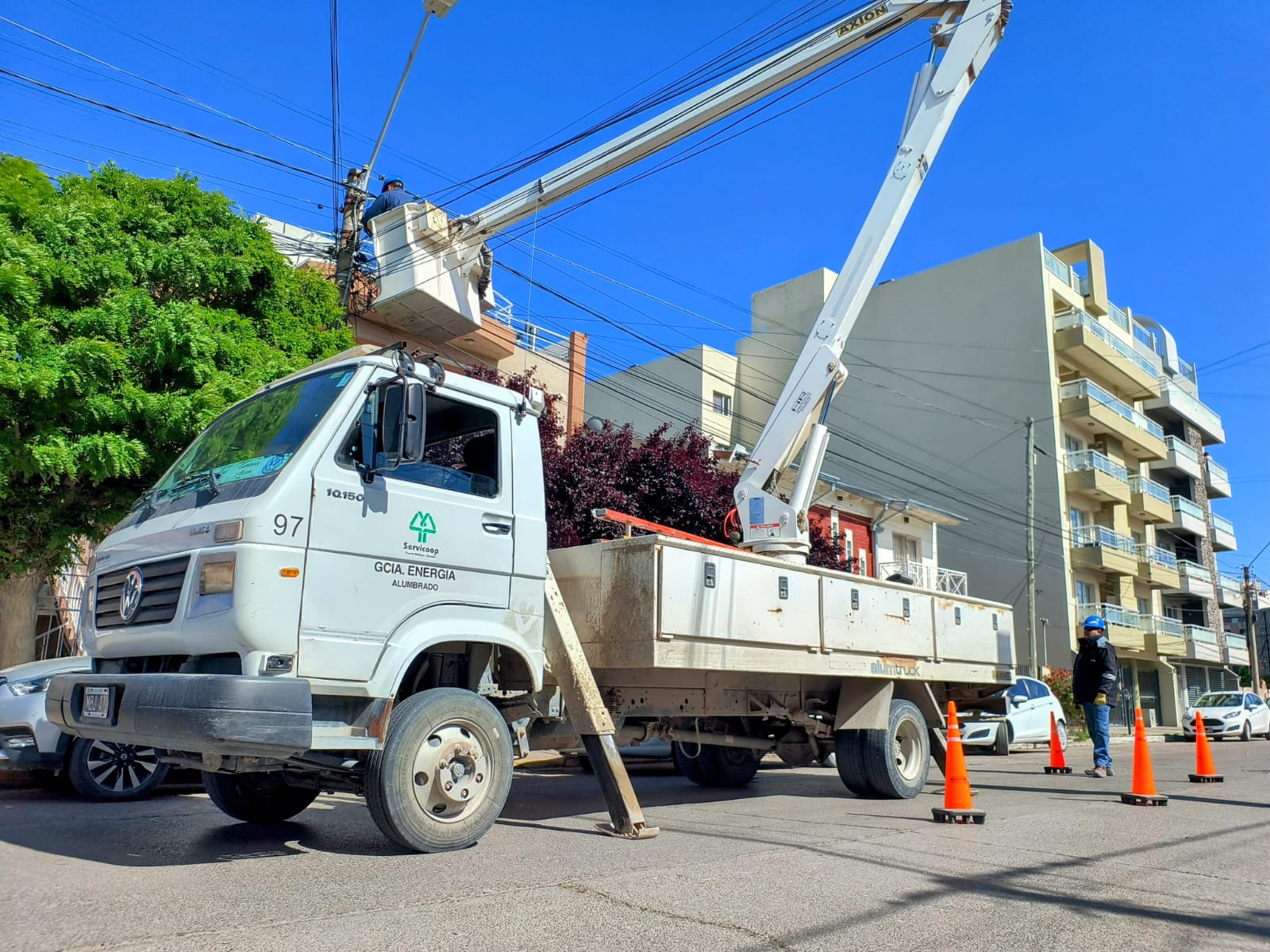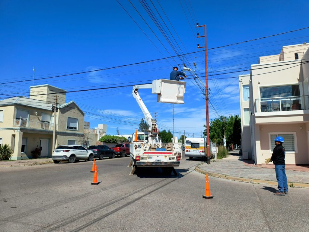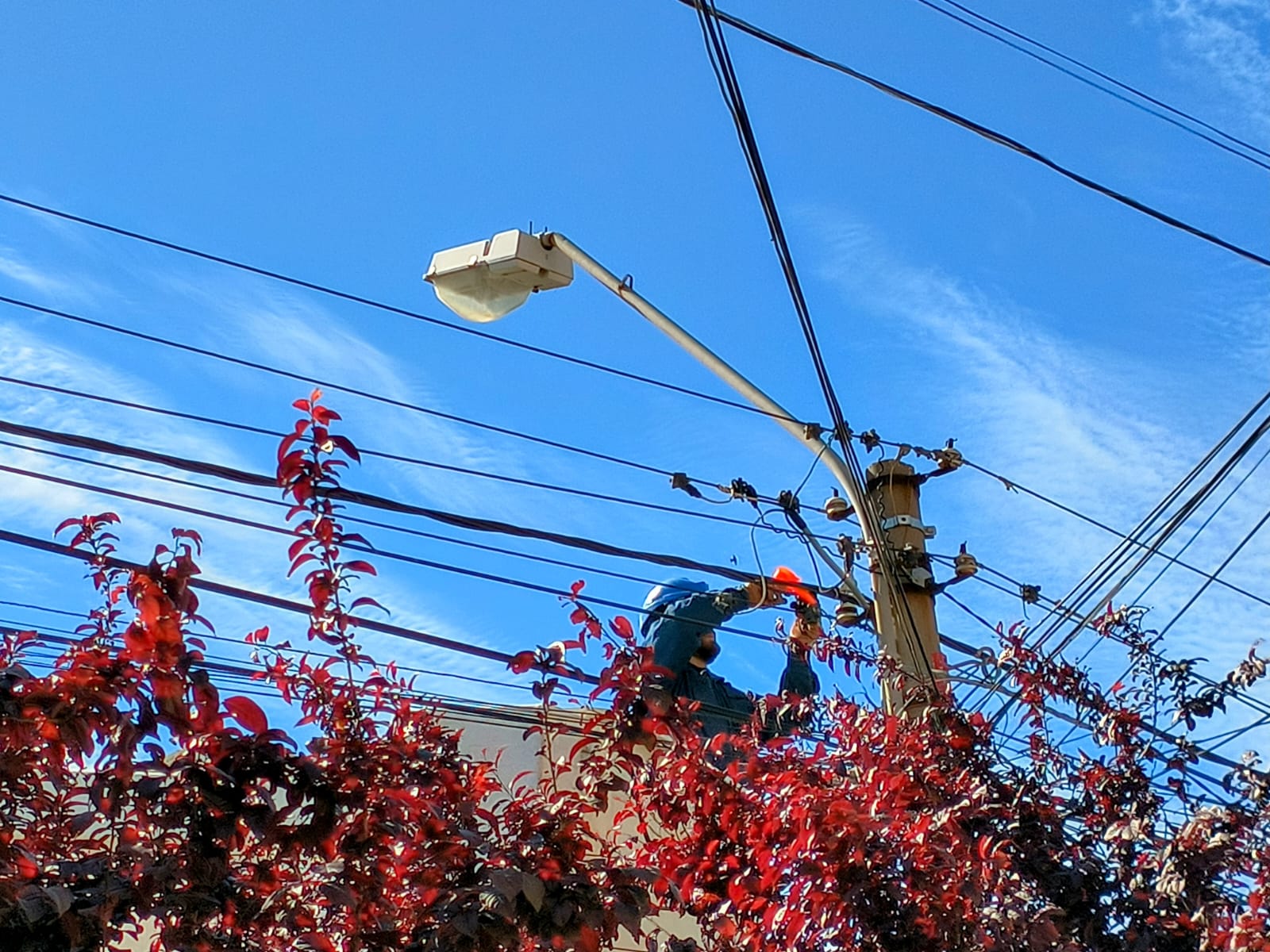 Luego de realizado el montaje e instalación de nuevas redes preensambladas de baja tensión, sobre la calle 25 de Mayo entre Albarracín y Moreno, nuestro personal de Alumbrado, lleva adelante la vinculación del sistema de alumbrado público a las nuevas instalaciones.
